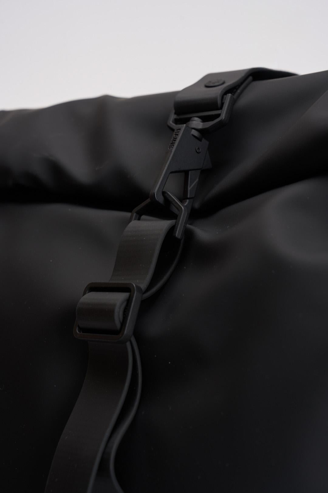 Zaino nero impermeabile uomo RAINS. Il Rolltop Rucksack è progettato con cura per bloccare la pioggia durante gli spostamenti all'aperto. Per proteggere gli oggetti essenziali dalla pioggia. Caratteristiche:- Il caratteristico tessuto impermeabile firmato Rains.- Apertura rolltop con sistema di compressione a scatto e moschettone- Uno scomparto principale- Tasca anteriore con cerniera rivestita- Tasca laterale per dispositivi fino a 16"- Schienale imbottito in airmesh- Spallacci regolabili imbottiti- Manico di trasporto a cinghia- Cinghia pettorale regolabile.Composizione: 100% PES (poliestere). Alt. 48 x Lungh. 32 x Largh. 11 cm. Capienza: 17 litri.Peso: 840 g.