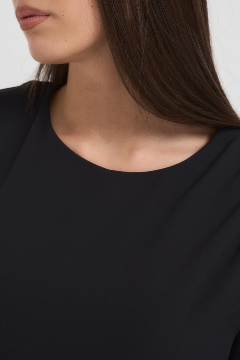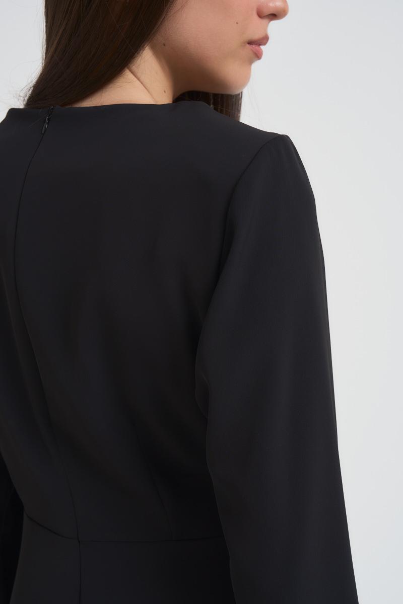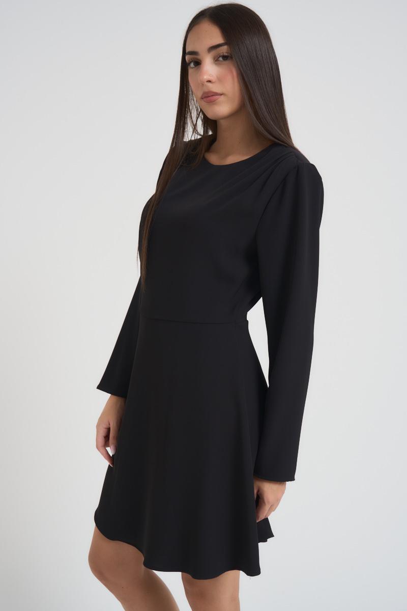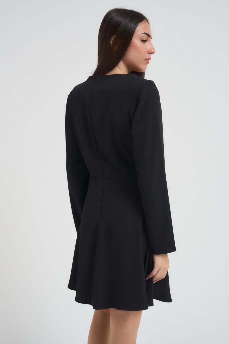 LOKITA MILANO Abito donna corto nero. Modello a manica lunga e girocollo, gonna svasata e manica a campana. Composizione: poliestere. La modella è alta 172 cm e indossa la taglia S.
