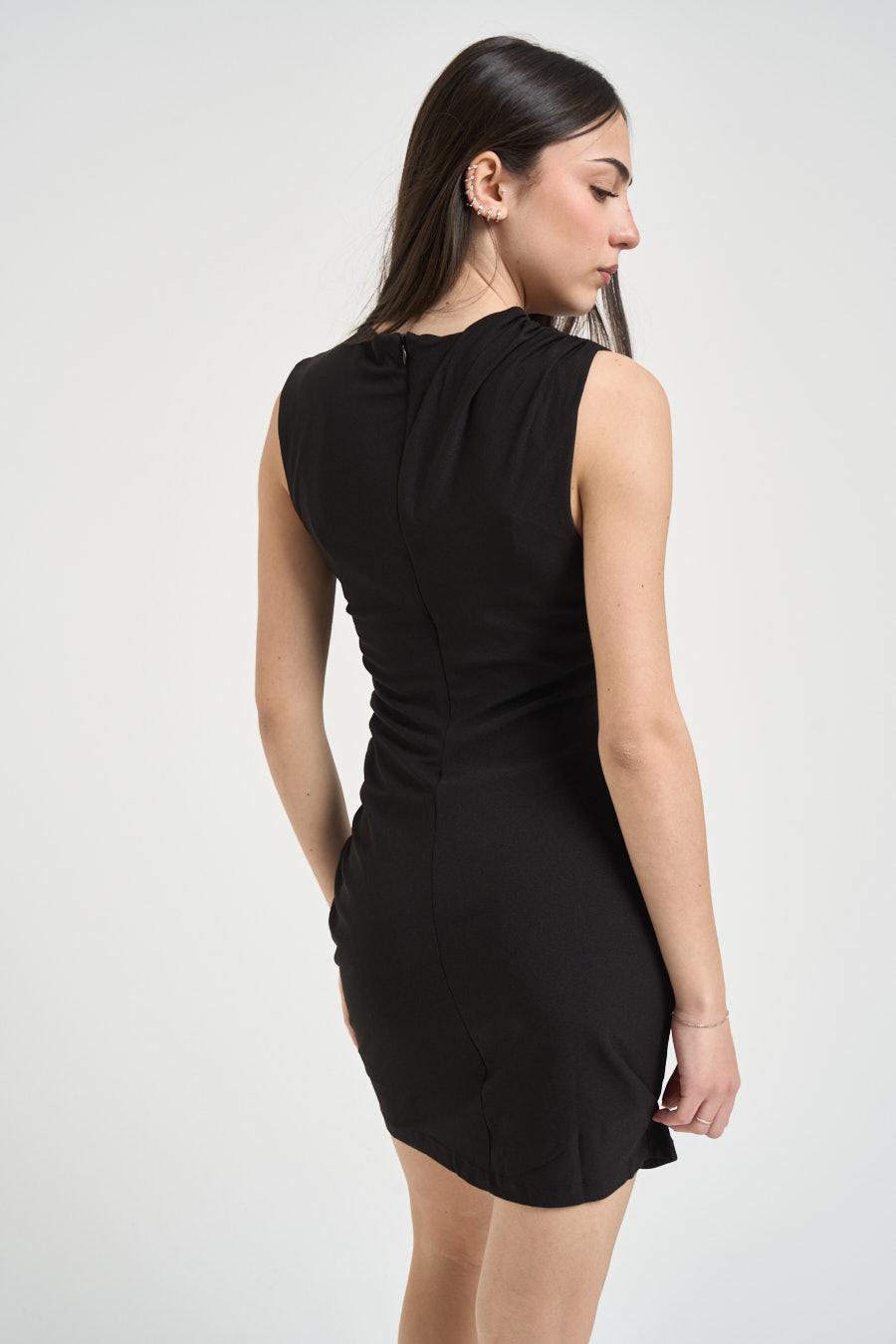 ONLY NOOS Abito donna drappeggiato nero. Modello corto. Senza maniche. Drappeggio. Chiusura con cerniera sul retro. Composizione: 95% poliestere, 5% elastane. La modella è alta 172 cm e indossa la taglia XS.
