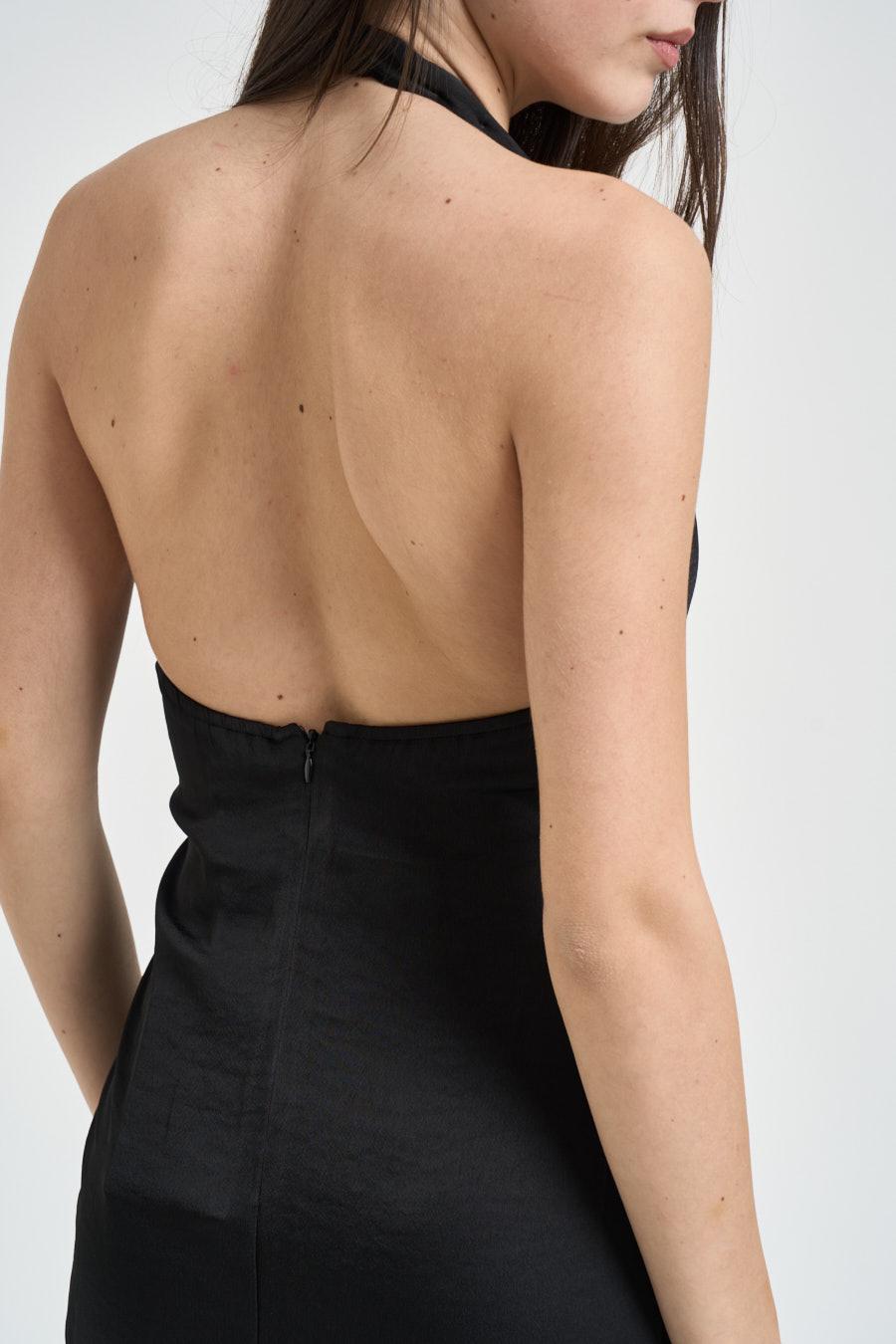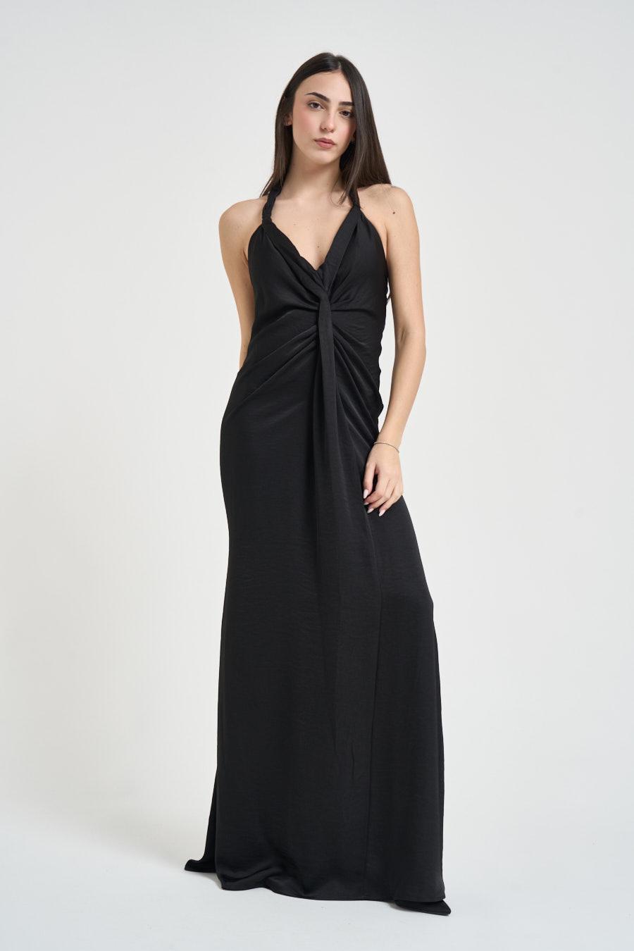 ELEH Abito donna lungo nero. Modello drappeggiato. Spalline. Scollo a V. Schiena scoperta. Chiusura con cerniera sul retro. Composizione: poliestere. La modella è alta 172 cm e indossa la taglia 40.