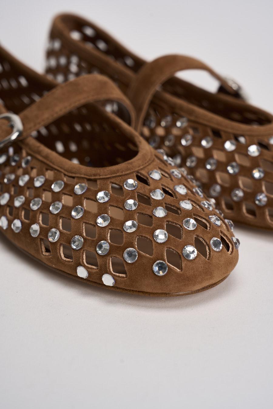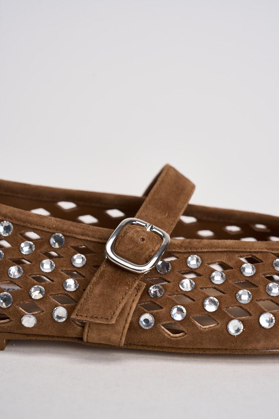 STEVE MADDEN Ballerina donna nocciola traforata con borchie silver. Modello punta tonda con cinturino regolabile con fibbia micro sulla parte superiore. Composizione: pelle. Calzata regolare.