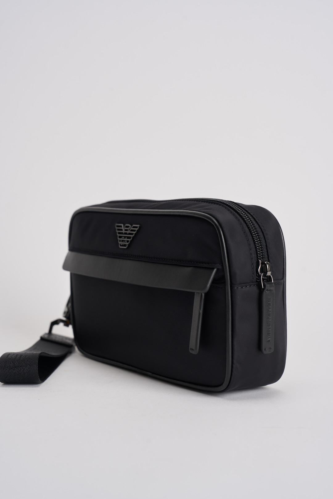 EMPORIO ARMANI Beauty in nylon uomo. Modello: Da viaggio, Utility. Logo: Eagle Armani. Chiusura: Con zip. Tasche: Con zip. Forma rettangolare. Manico: Fettuccia da polso amovibile. Materiali: Nylon. Fantasia: Tinta unita. Colore: nero.