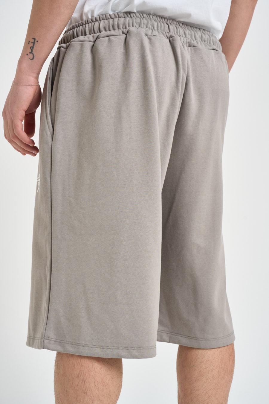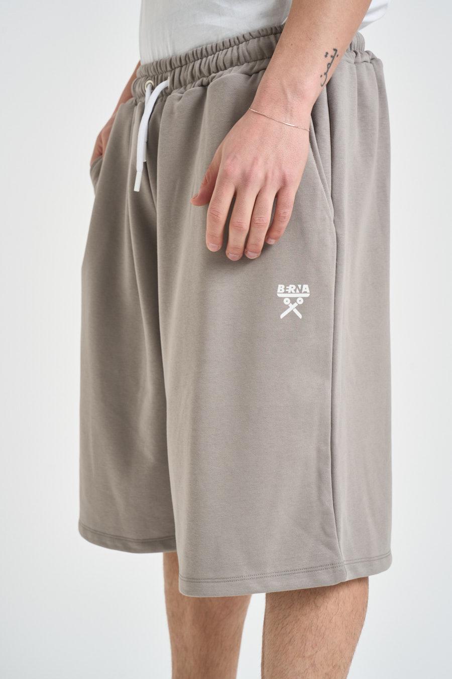 BERNA Bermuda uomo grigio chiaro. Modello con vita elasticizzata e coulisse regolabile, logo stampato a contrasto laterale. Composizione: 100% cotone. Il modello è alto 190 cm e indossa la taglia L.