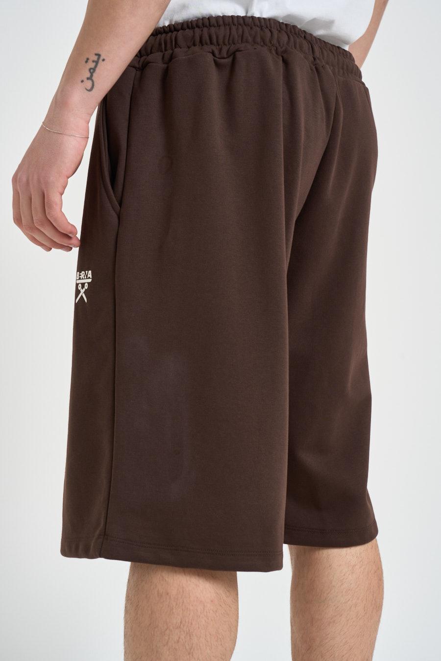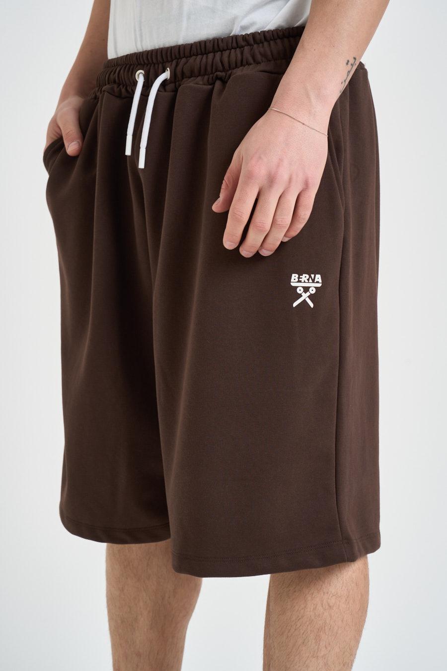 BERNA Bermuda uomo marrone. Modello con vita elasticizzata e coulisse regolabile, logo stampato a contrasto laterale. Composizione: 100% cotone. Il modello è alto 190 cm e indossa la taglia L.