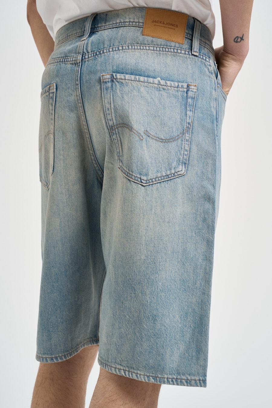JACK & JONES Bermuda uomo slavato in denim. Modello corto. Chiusura frontale con cerniera e bottone. Passanti in vita. Cinque tasche. Composizione: 100% cotone. Il modello è alto 190 cm e indossa la taglia L.