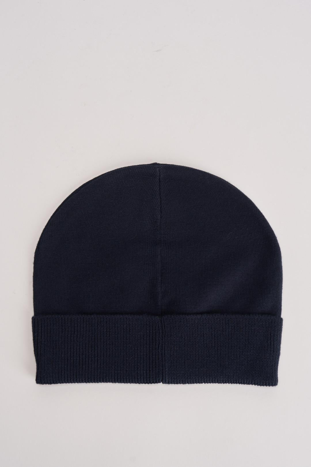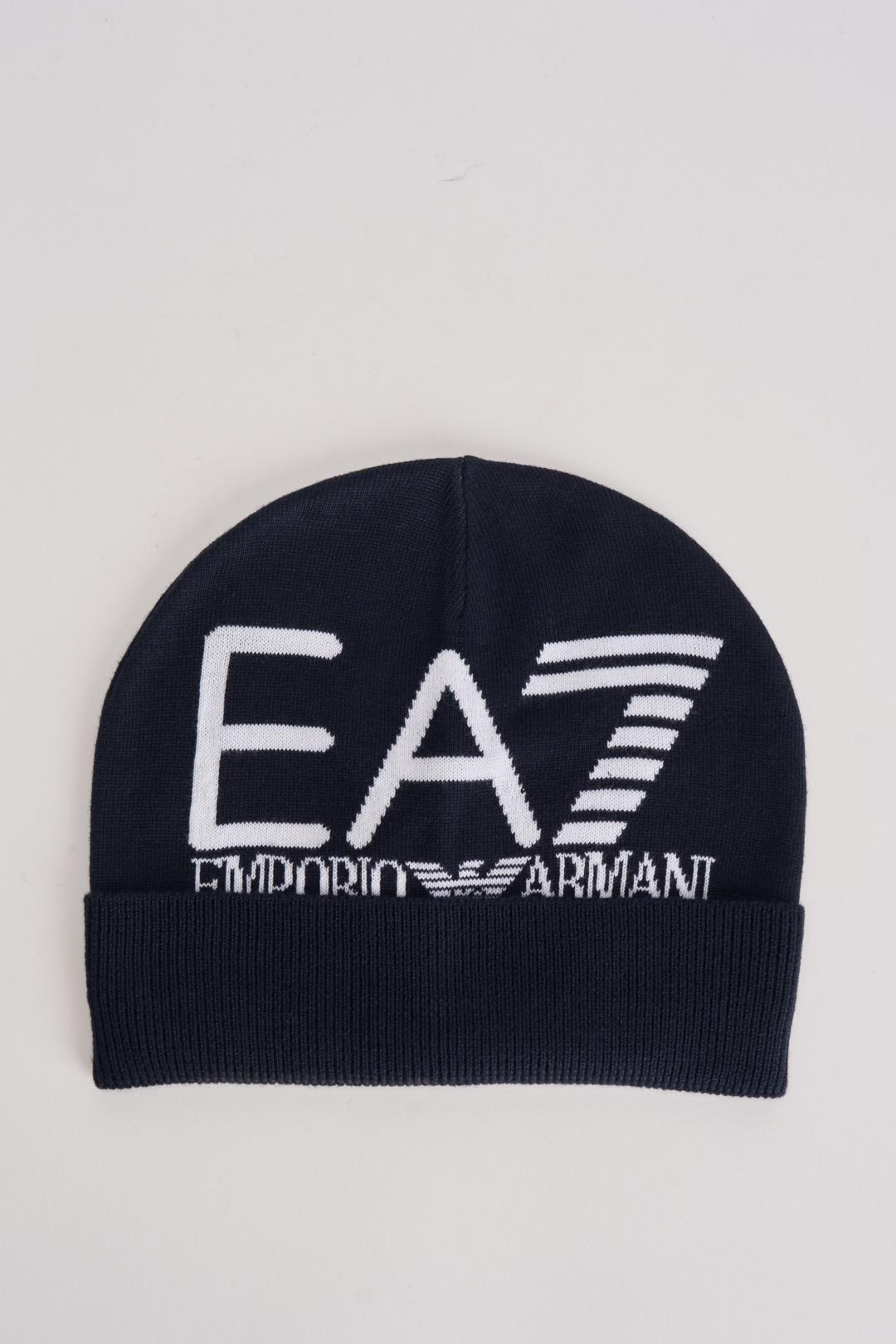 EA7 Berretto uomo blu con logo frontale. Maxi logo lettering in bianco. In maglia con risvolto. Composizione: 95% acrilica, 5% poliammide.