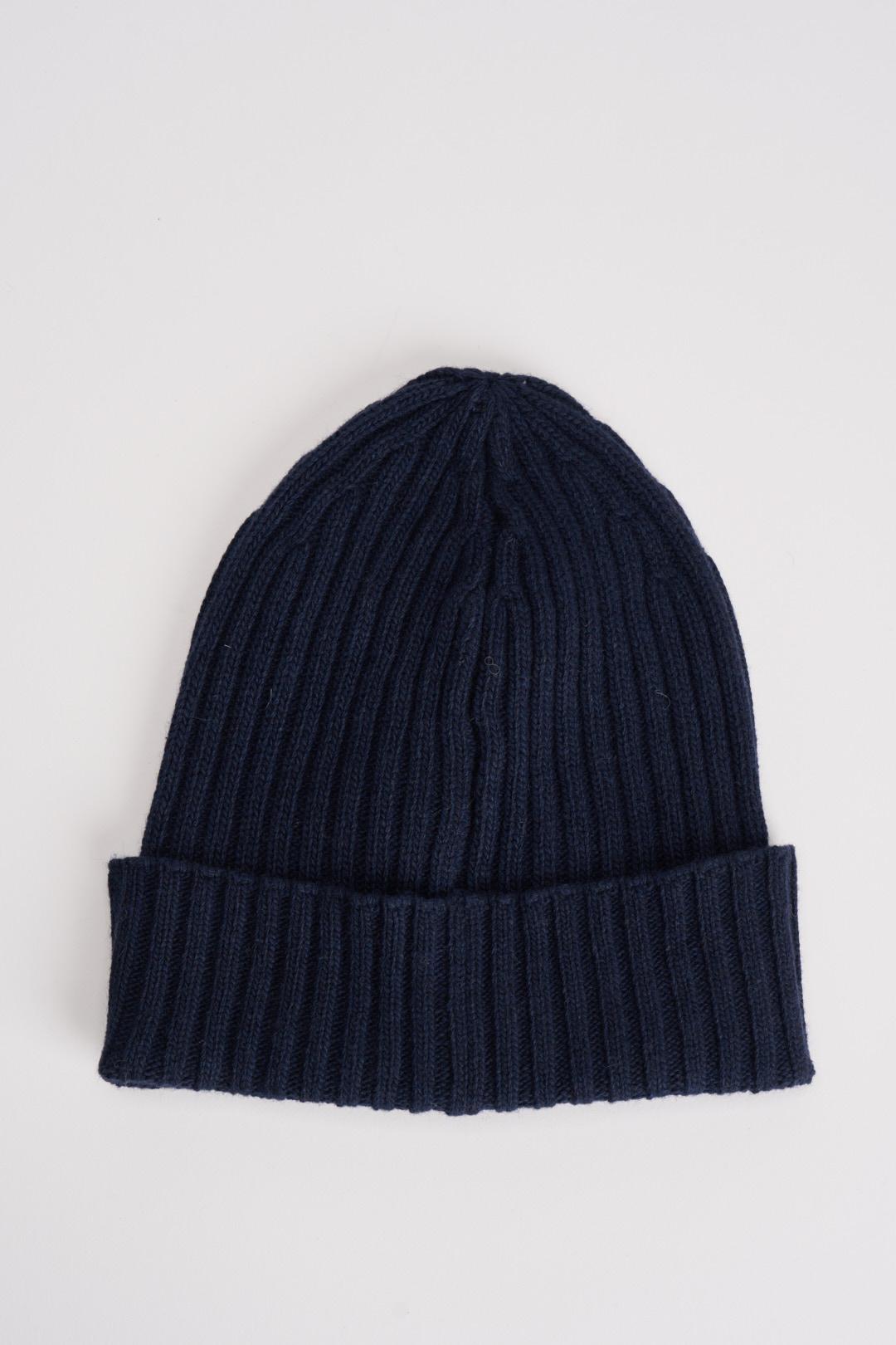 REPLAY Berretto uomo blu notte. Lavorazione a costine. Logo brand ricamato rosso. Composizione: 40% Lana, 30% Viscosa, 20% Nylon, 10% Cashmere.