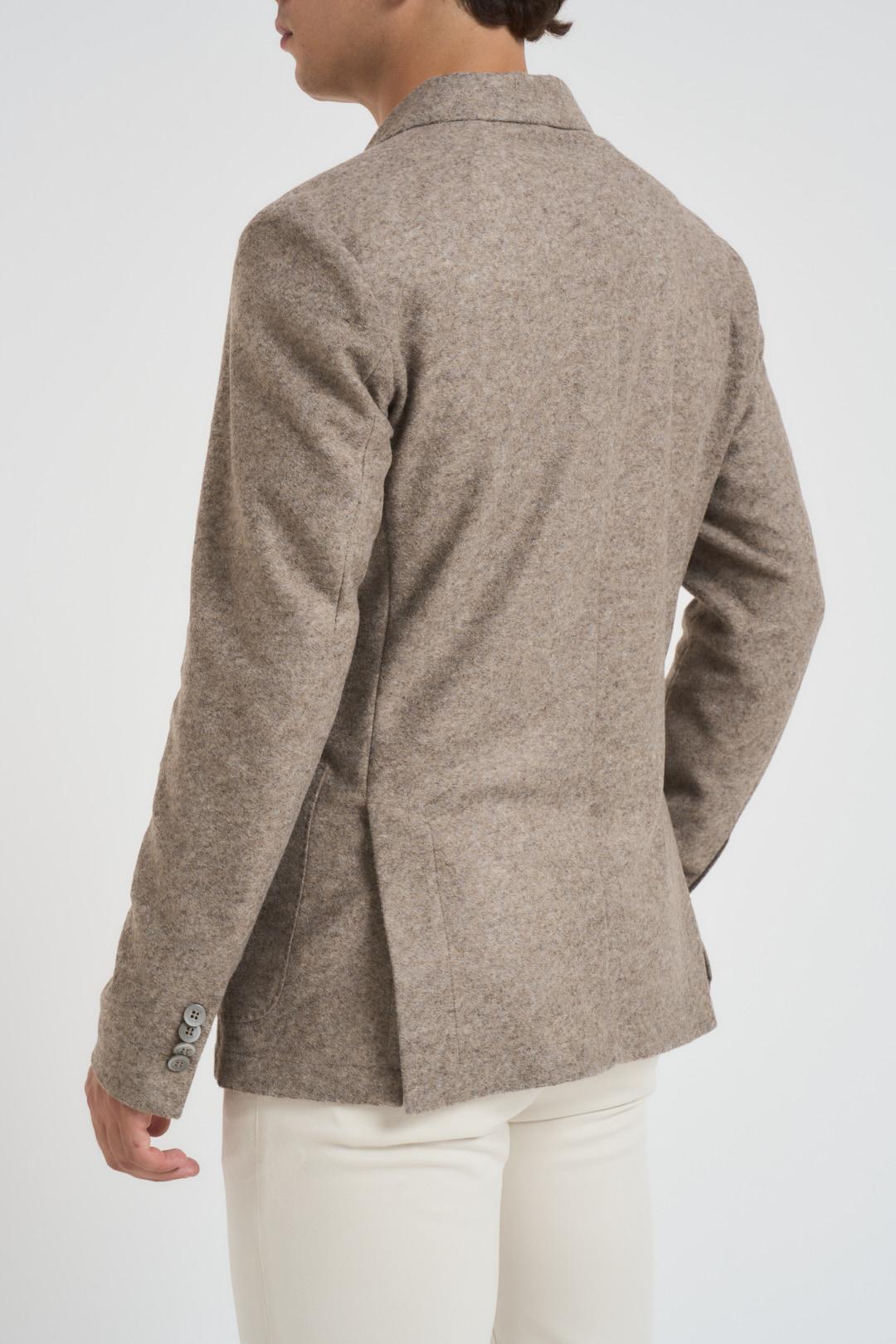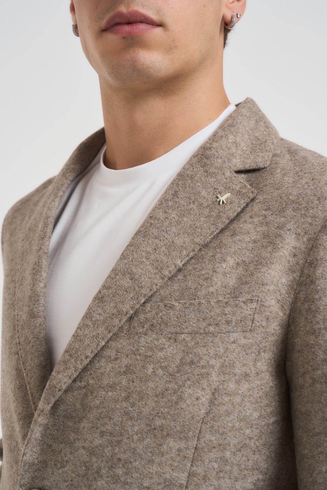 AT.P.CO Blazer in misto lana uomo. Presenta collo a revers, maniche con polsini abbottonati e una chiusura frontale a due bottoni. Il taschino a filetto sul petto, le tasche applicate sui fianchi e le pratiche tasche interne aggiungono carattere e praticità, mentre i doppi spacchi sul retro garantiscono una vestibilità comoda e dinamica. Colore: tortora. Il modello è alto 185 cm e indossa la tg 48.
