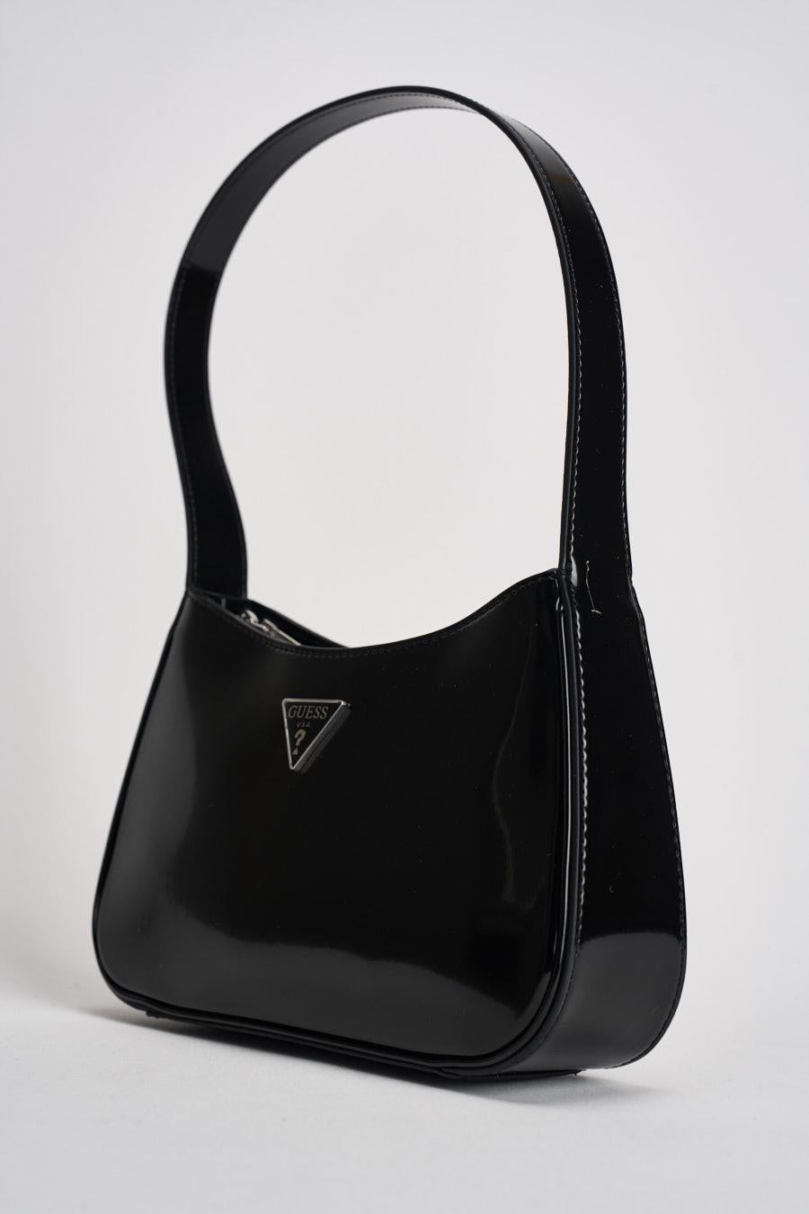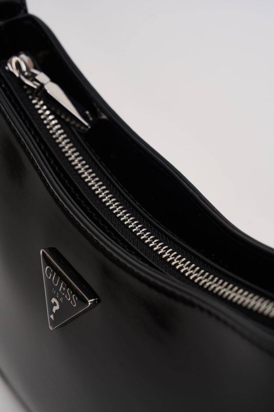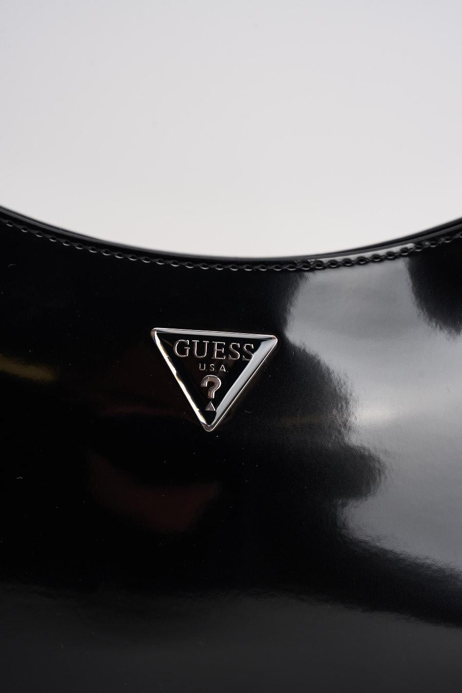 GUESS Borsa Arnela donna nera lucida. Modello dal design essenziale, caratterizzato da una silhouette arrotondata, la rende sofisticata e raffinata. Misure: 26x17x7 cm (lxhxp). Colore: nero. Materiale: ecopelle. Chiusura: zip