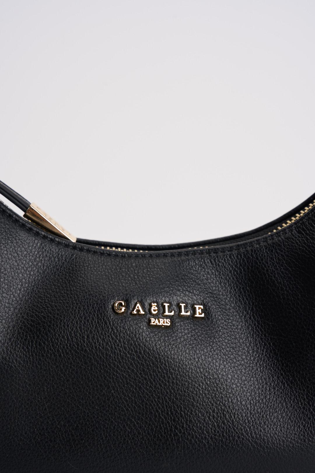 GAELLE Borsa donna a spalla nera. Modello a spalla o a mano, con chiusura a zip e logo dorato frontale. Spalla regolabile con fibbia. Composizione: 100% poliuretano. Misure: 18x26x7cm.