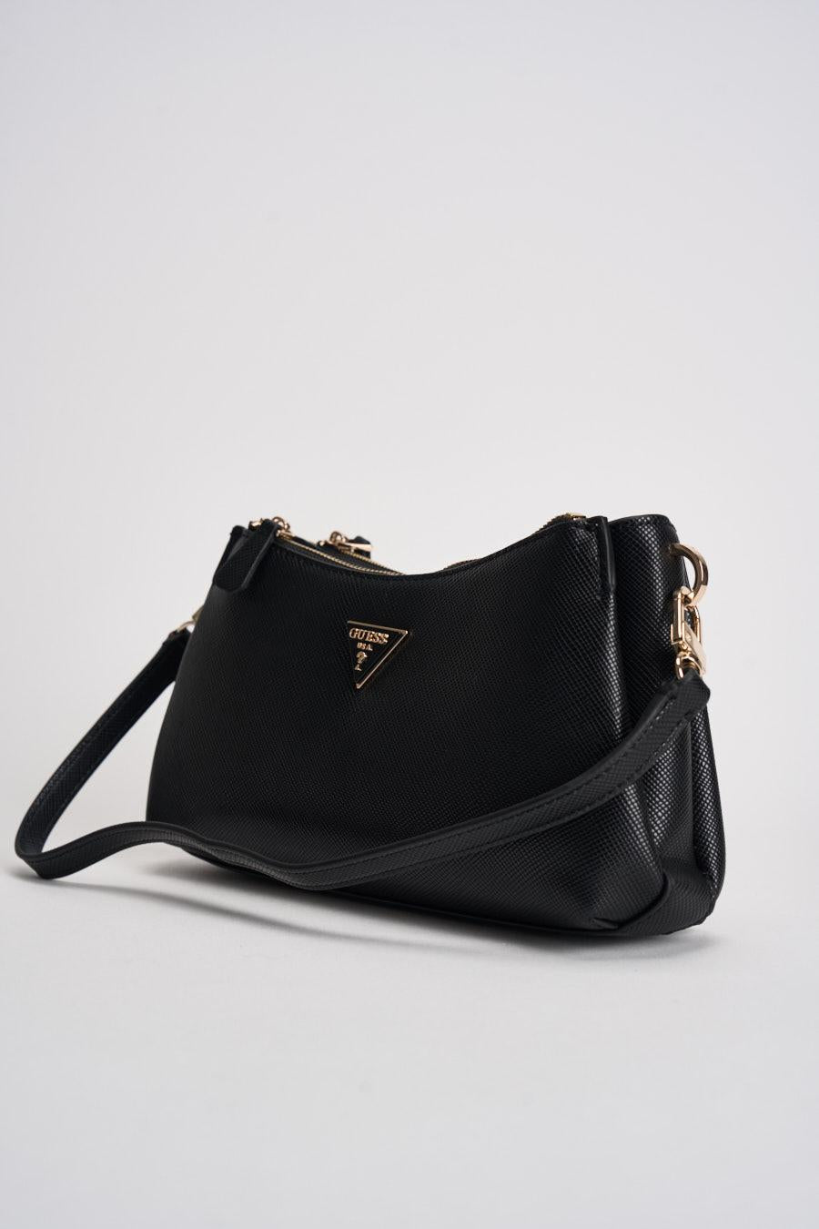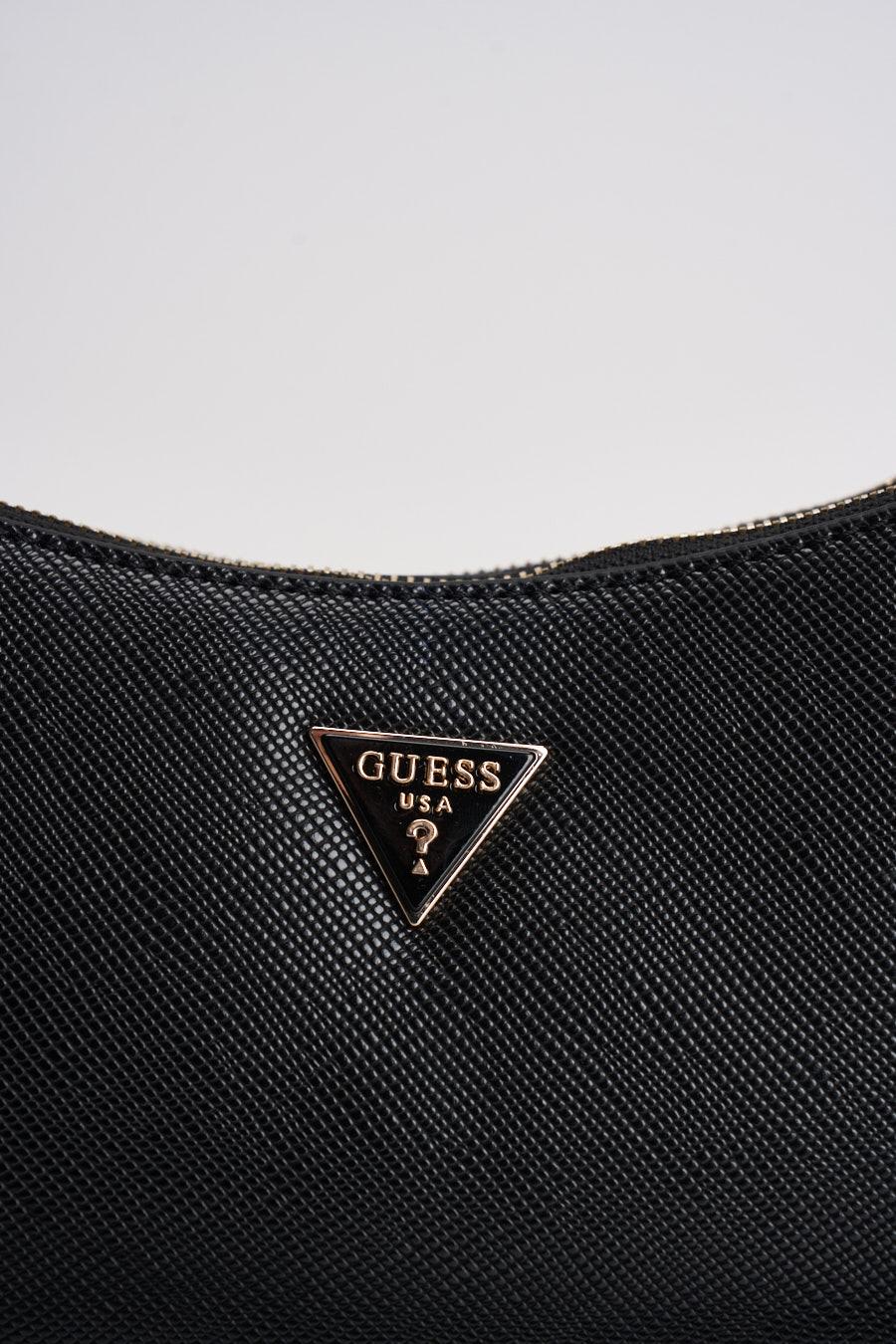 GUESS Borsa donna a spalla nera. Modello con due scomparti chiusi con zip, tasca interna chiusa con zip. Patch logo sul davanti e chiusura con zip. Composizione: ecopelle. Dimensioni: 27x15x7 cm