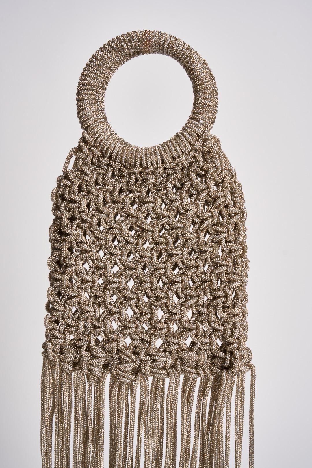 TWENTY FOURHAITCH Borsa donna Maronti con strass oro. Modello a mano con dettaglio frange, doppio manico tondo, chiusura calamita. Composizione: 100% poliestere. Dimensioni: 22 x 30 x 4 cm.
