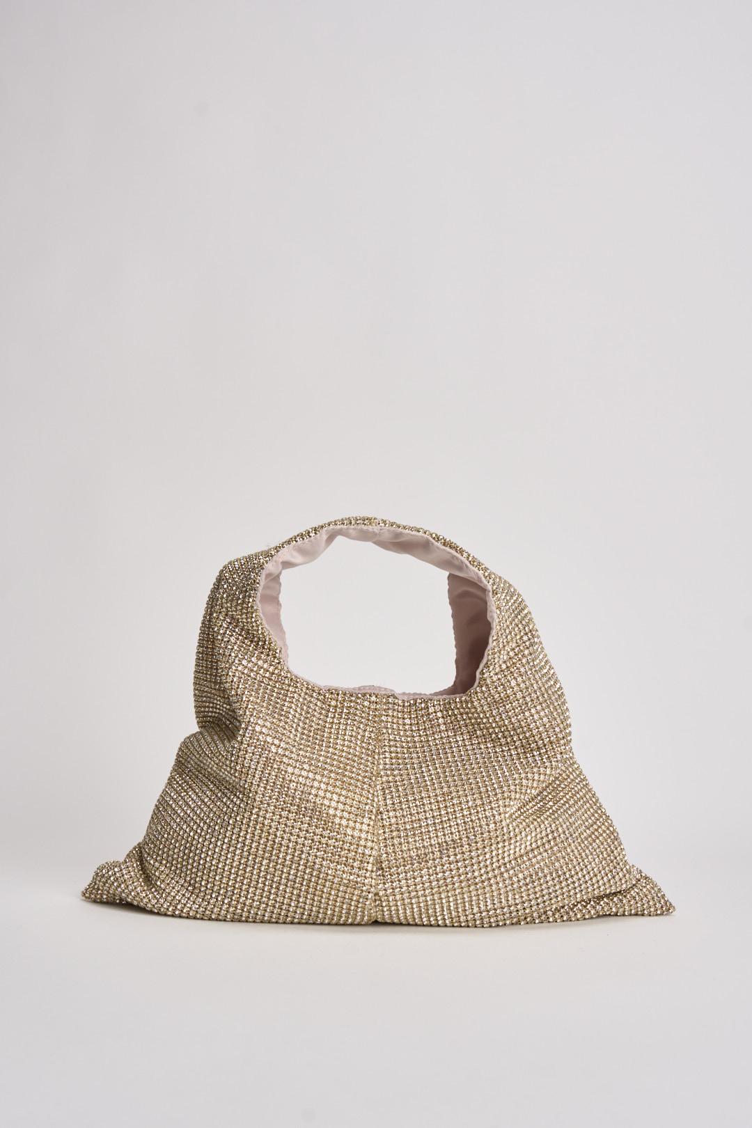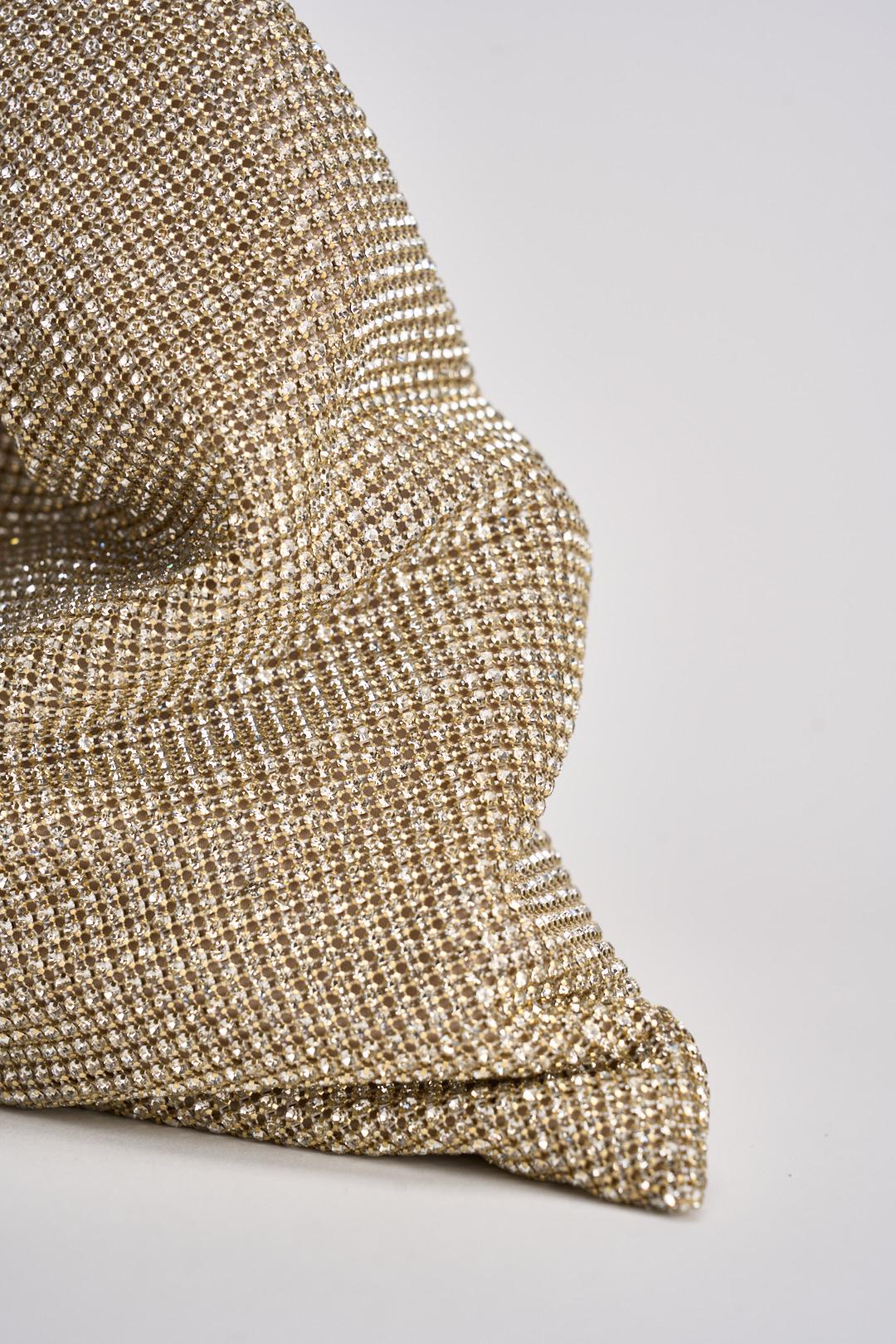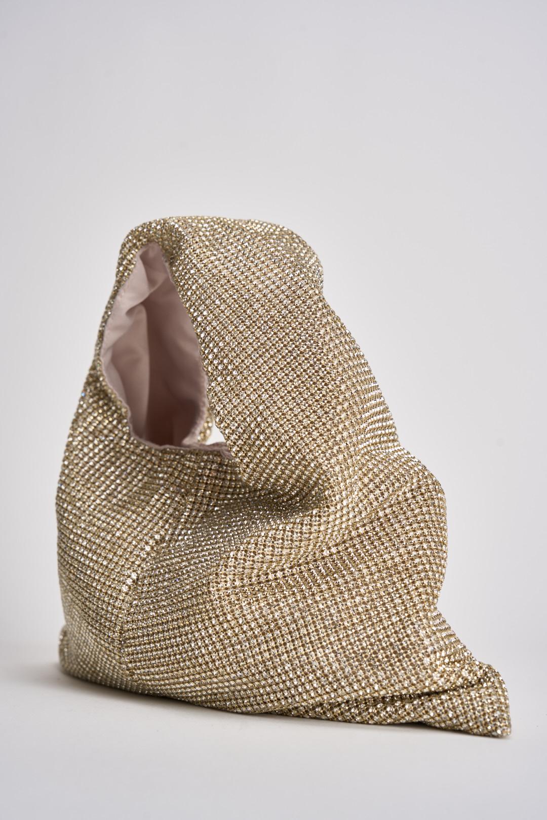 TWENTY FOURHAITCH Borsa donna Parks con strass oro. Modello clutch a mano. Borsa dalla forma morbida in maglia di stass oro. Composizione: in tessuto e strass. Dimensioni: 32x 28 cm.