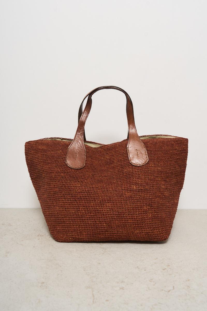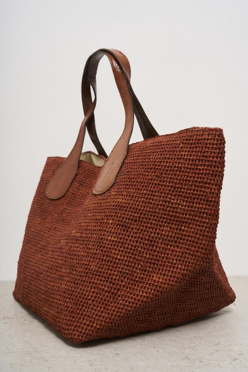 IBELIV Borsa donna Tokyo in rafia mattone. Sistema di chiusura magnetica con bottoni a pressione, 4 tasche interne. Composizione: 100% naturale Raphia.Misure: 55x29x29 cm.