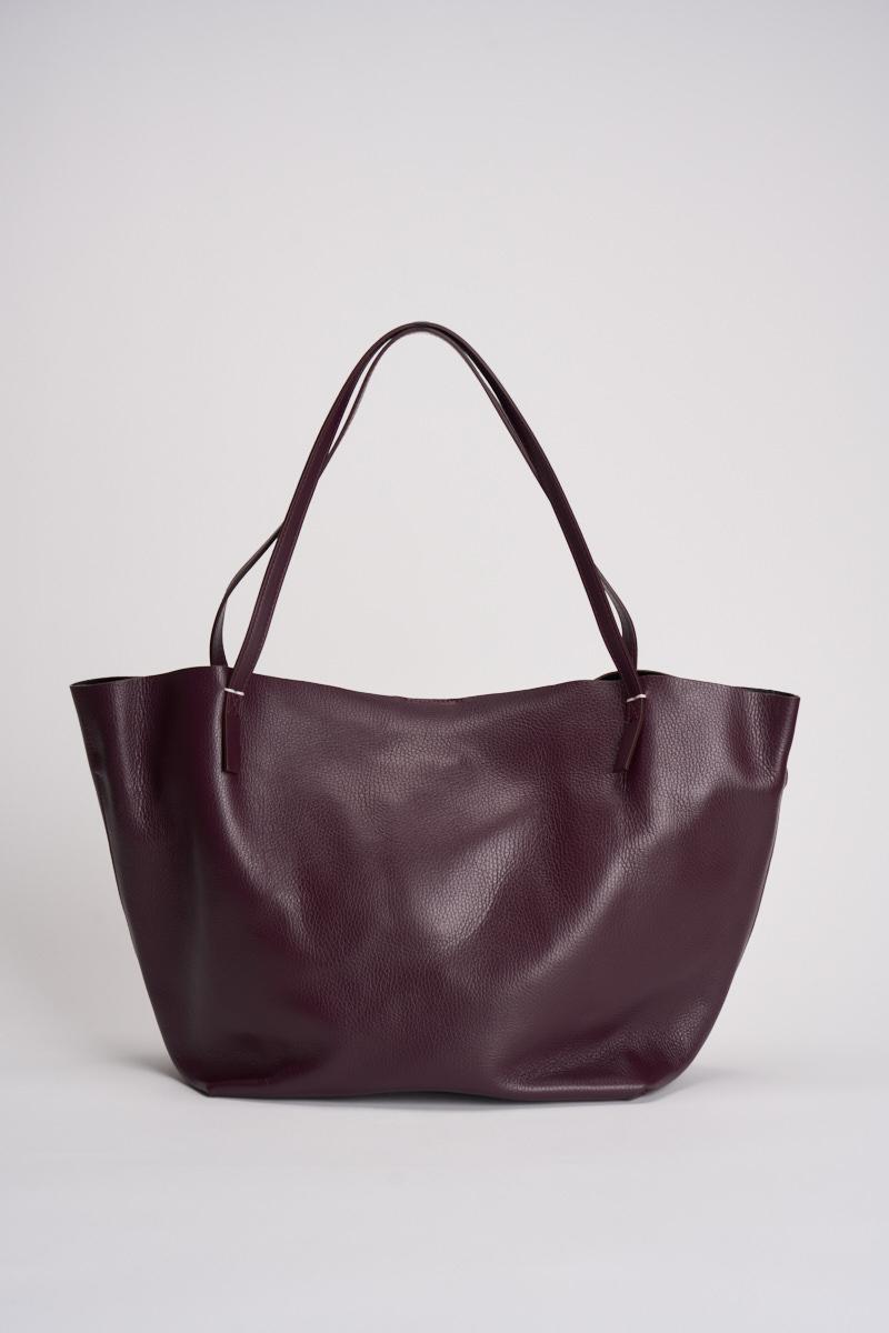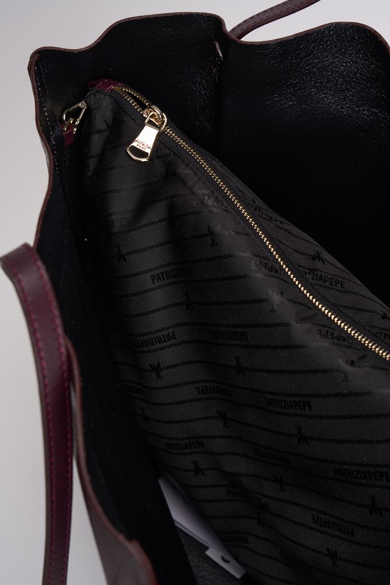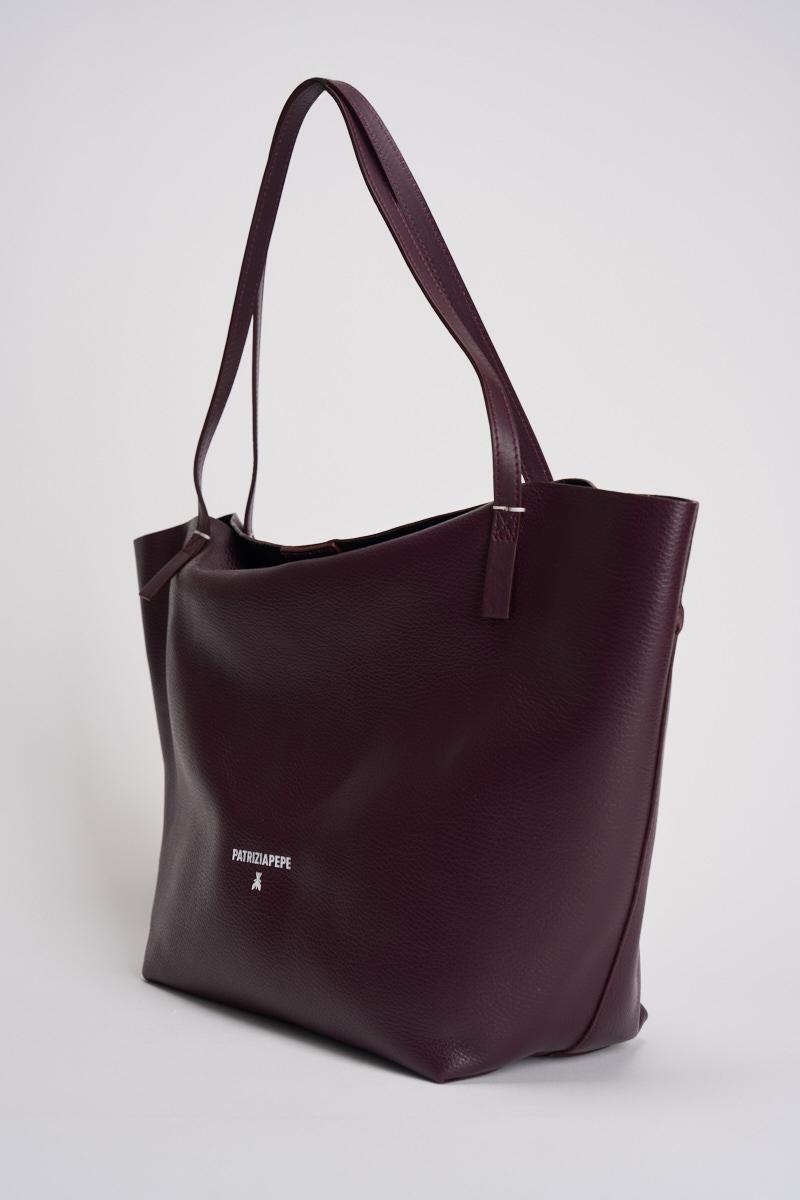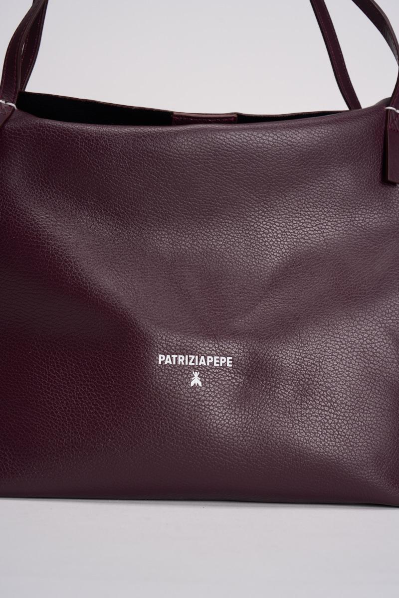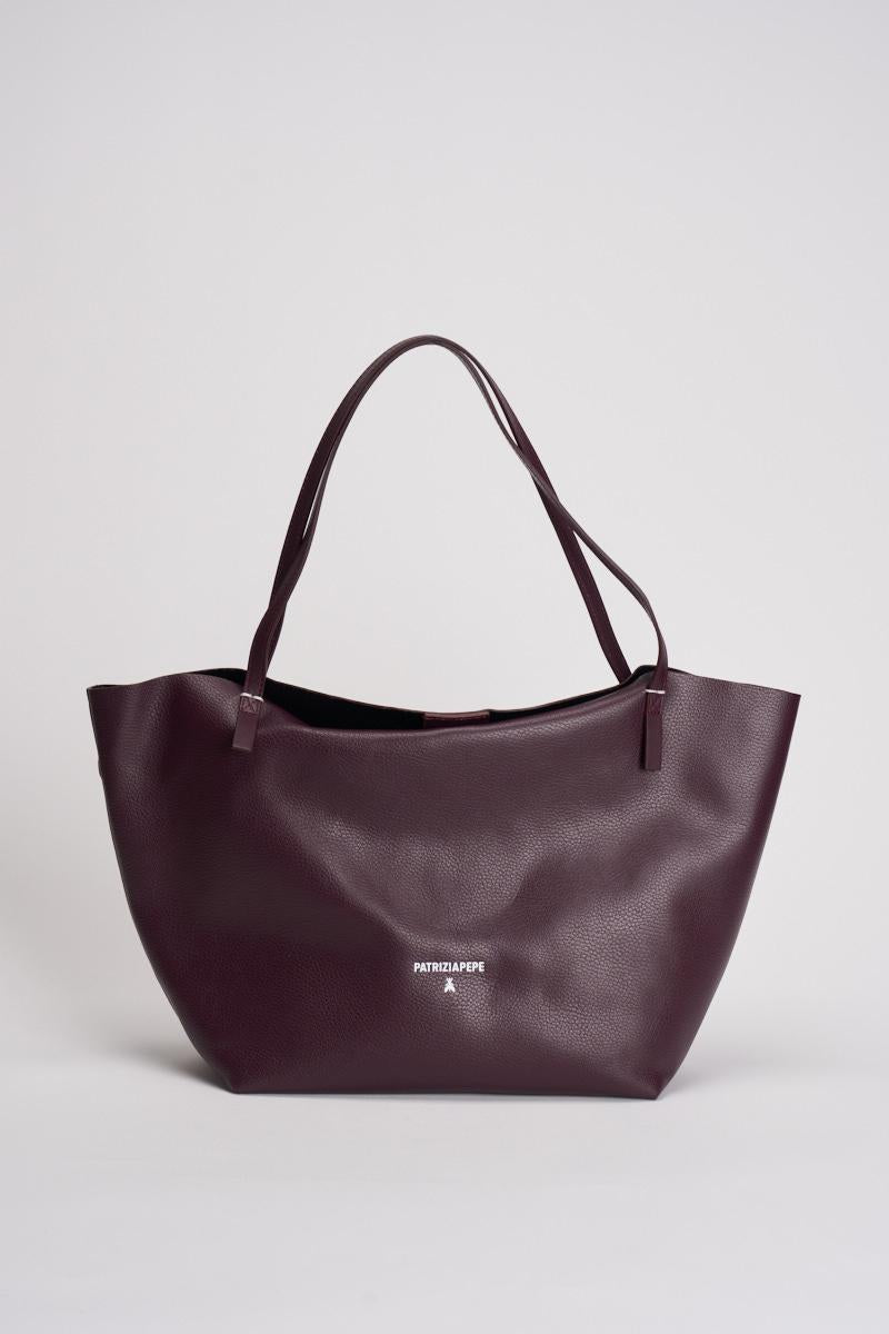 PATRIZIA PEPE Borsa shopper donna in pelle bordeaux. Modello dal desing morbido, chiusura dello scomparto con cerniera e clip magnetica. Dimensioni: 32/55 x 33 x 16 cm. Altezza maniglie: 23 cm. Colore: nero. Composizione: 100% pelle.