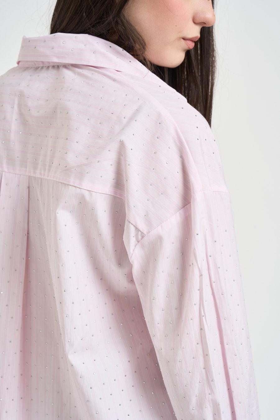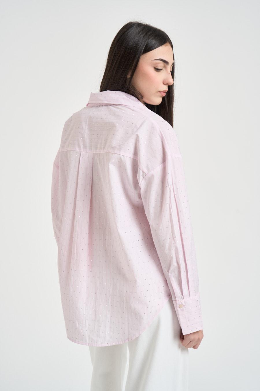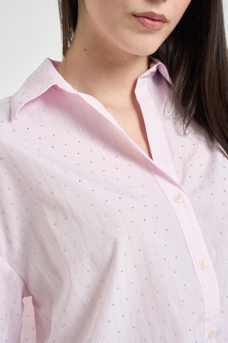 ONLY Camicia donna con strass rosa. Modello over in tessuto leggero, maniche lunghe con polsini e bottone, chiusura frontale con bottoni. Fantasia a righe sottili con micro punti luminosi all over che donano un delicato effetto brillante. Fondo stondato leggermente più lungo sul retro. Composizione: 65%poliestere 35% cotone. La modella è alta 172cm e indossa la taglia S.