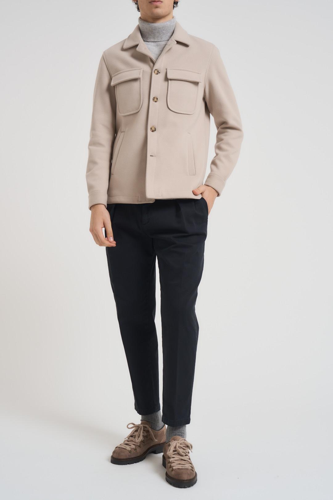 BLACKSUNDAY Camicia uomo beige. Modello con due tasca a patta sul petto e due a filetto laterali, chiusura con bottoni. Composizione: poliestere. Il modello è alto 190cm e indossa la taglia 50.