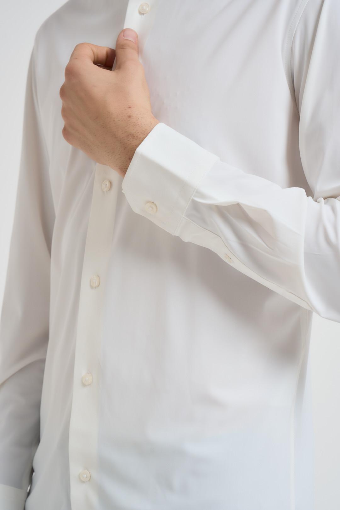 JACK&JONES Camicia uomo bianca. Modello con classico colletto, chiusura con bottoncini. Slim fit. Composizione: 75% Poliestere, 25% Elastan. Il modello è alto 190cm e indossa la taglia L.