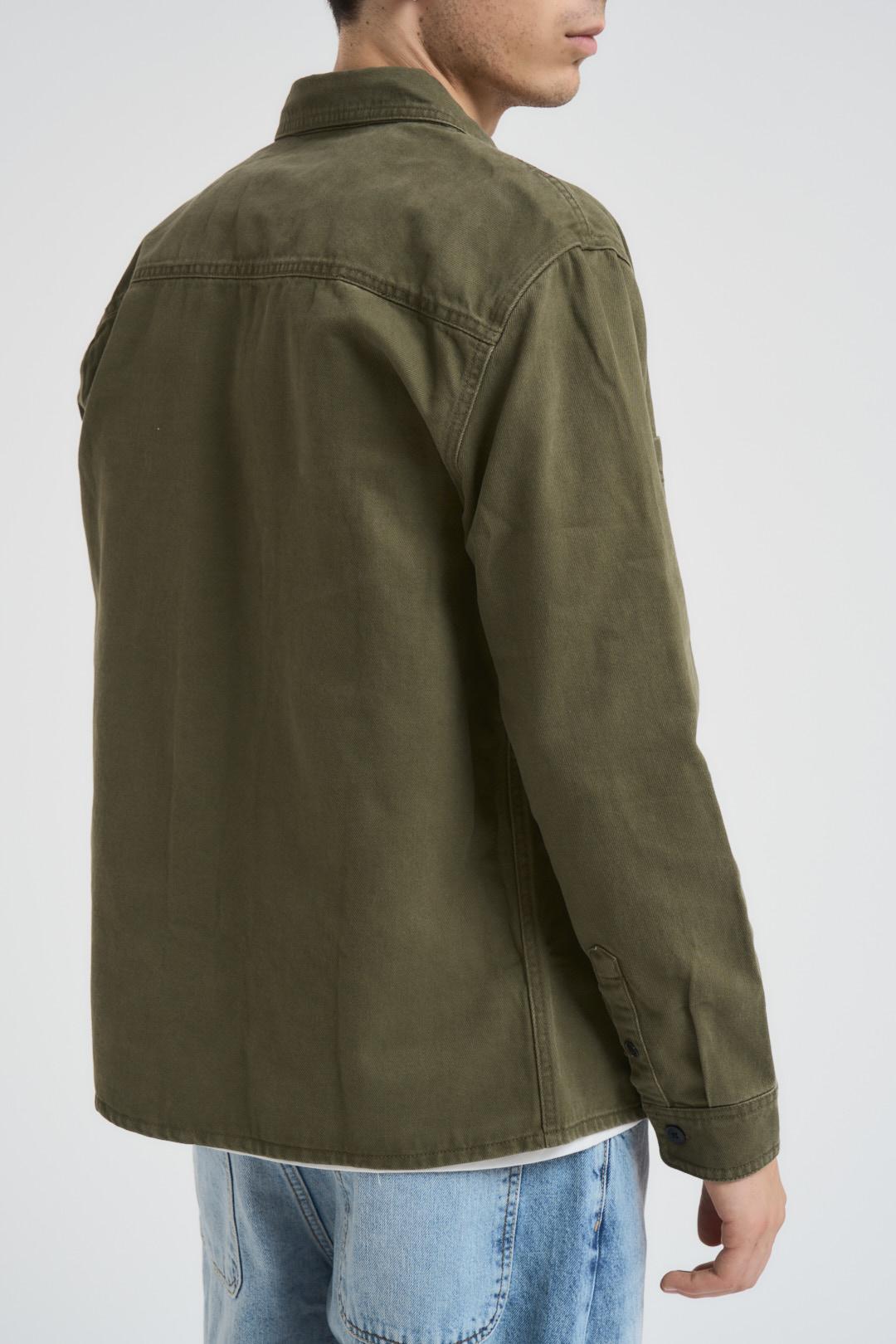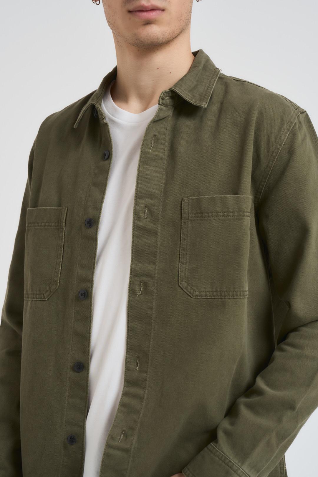 ONLY&SONS Camicia uomo verde militare. Modello con chiusura a bottoni, classico colletto alla francese, tasca a patta. Composizione: 100% cotone. Il modello è alto 190cm e indossa la taglia L.
