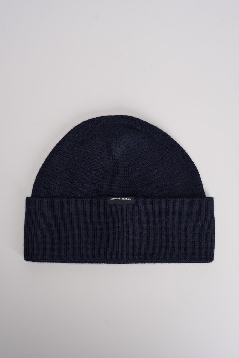 ARMANI EXCHANGE Cappellino uomo blu. Modello etichetta brand frontale, tessuto a costine. Composizione: 34% fibra sintetica 33% cotone 33% lana.