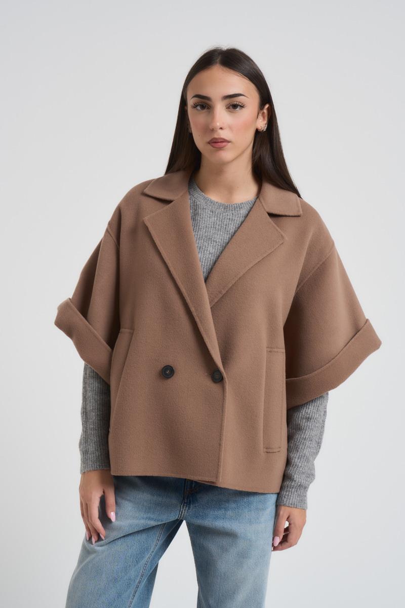MAX MARA WEEKEND Cappotto donna Pera corto in drap di lana cammello. Modello cucito a mano. Profondo collo a rever. Maniche corte con spalla scesa e risvolto al fondo. Chiusura con due bottoni a vista. Tasche a filettone verticale sul davanti. Sfoderato. Composizione: 100% Lana Vergine. La modella è alta 172 cm e indossa la taglia 40.
