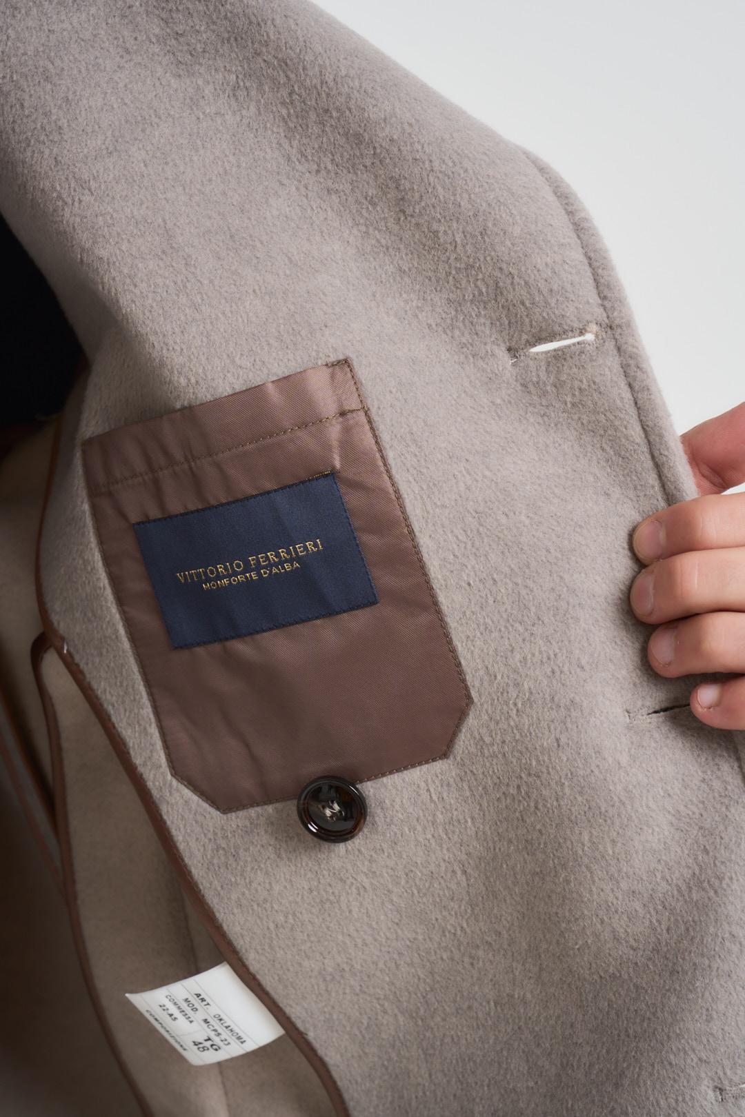 VITTORIO FERRIERI Cappotto uomo doppiopetto corto grigio chiaro. Modello con classico collo a rever, due tasche a filetto. Manica lunga con cinturino sul polsino. Regular fit. Composizione 76%poliestere 24%lana. Il modello è alto 190cm e indossa la taglia 50.