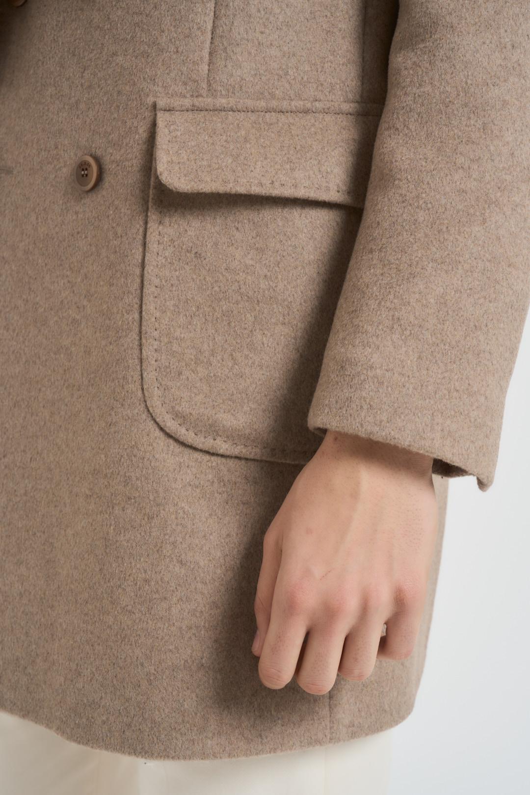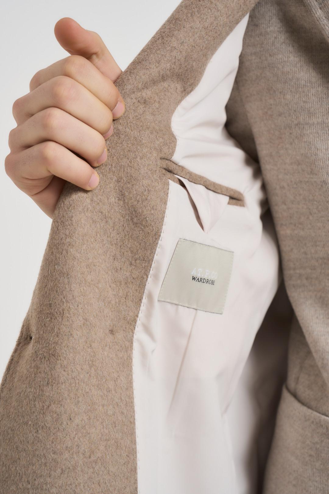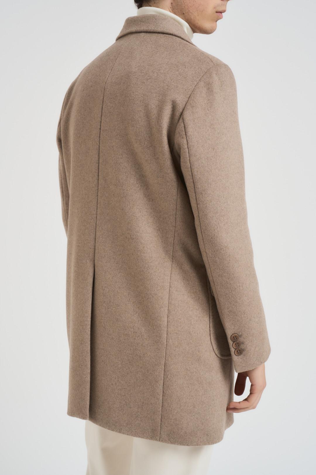 AT.P.CO Cappotto uomo doppiopetto midi beige. Modello con classico collo a rever, due tasche laterali a patta. Composizione: 80%poliestere 30% lana 10% altre fibre. Il modello è alto 190cm e indossa la taglia L.