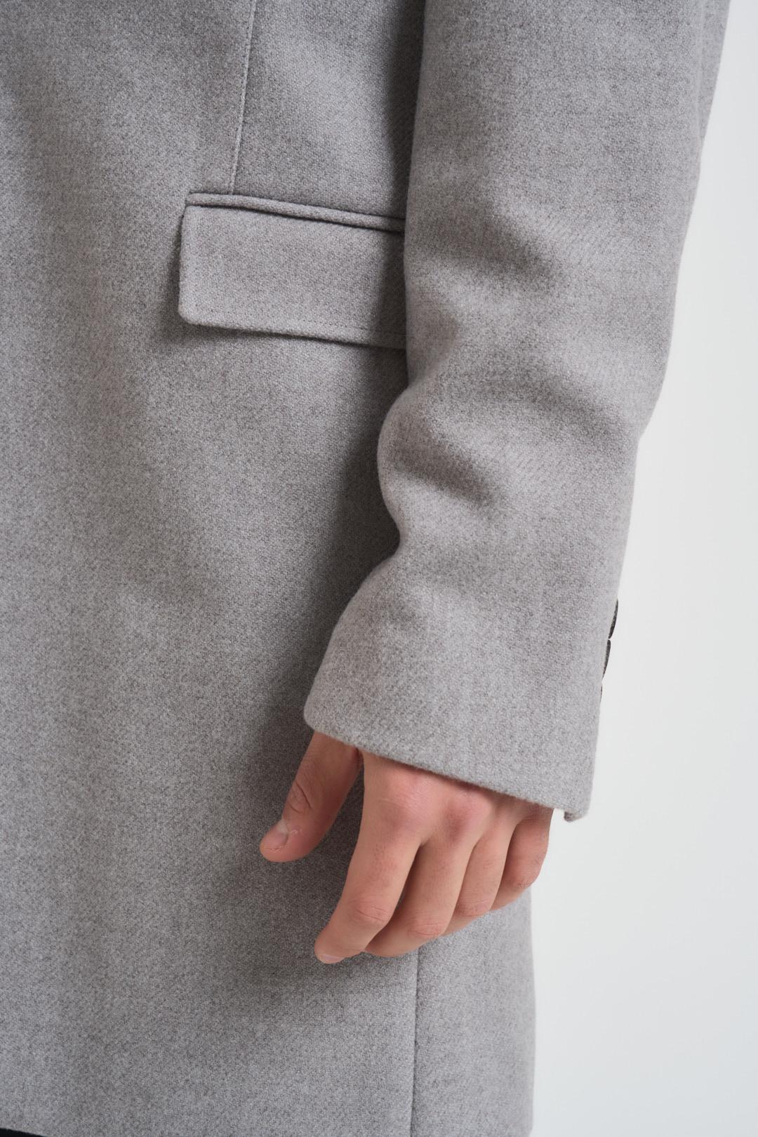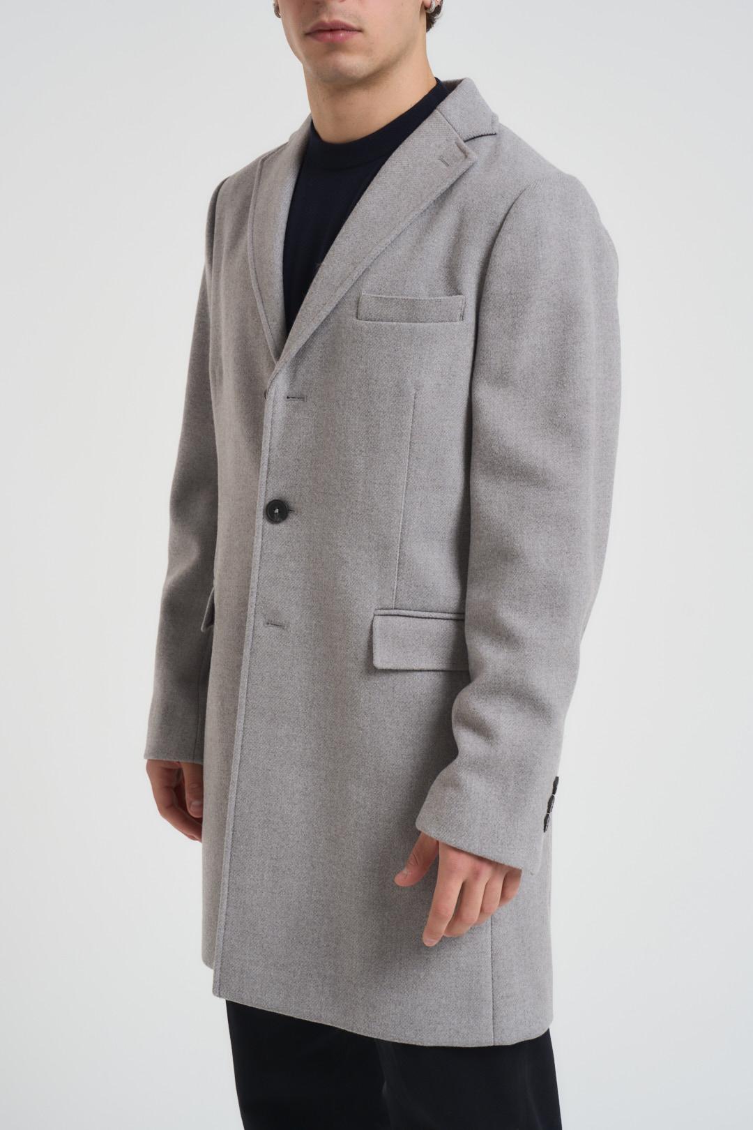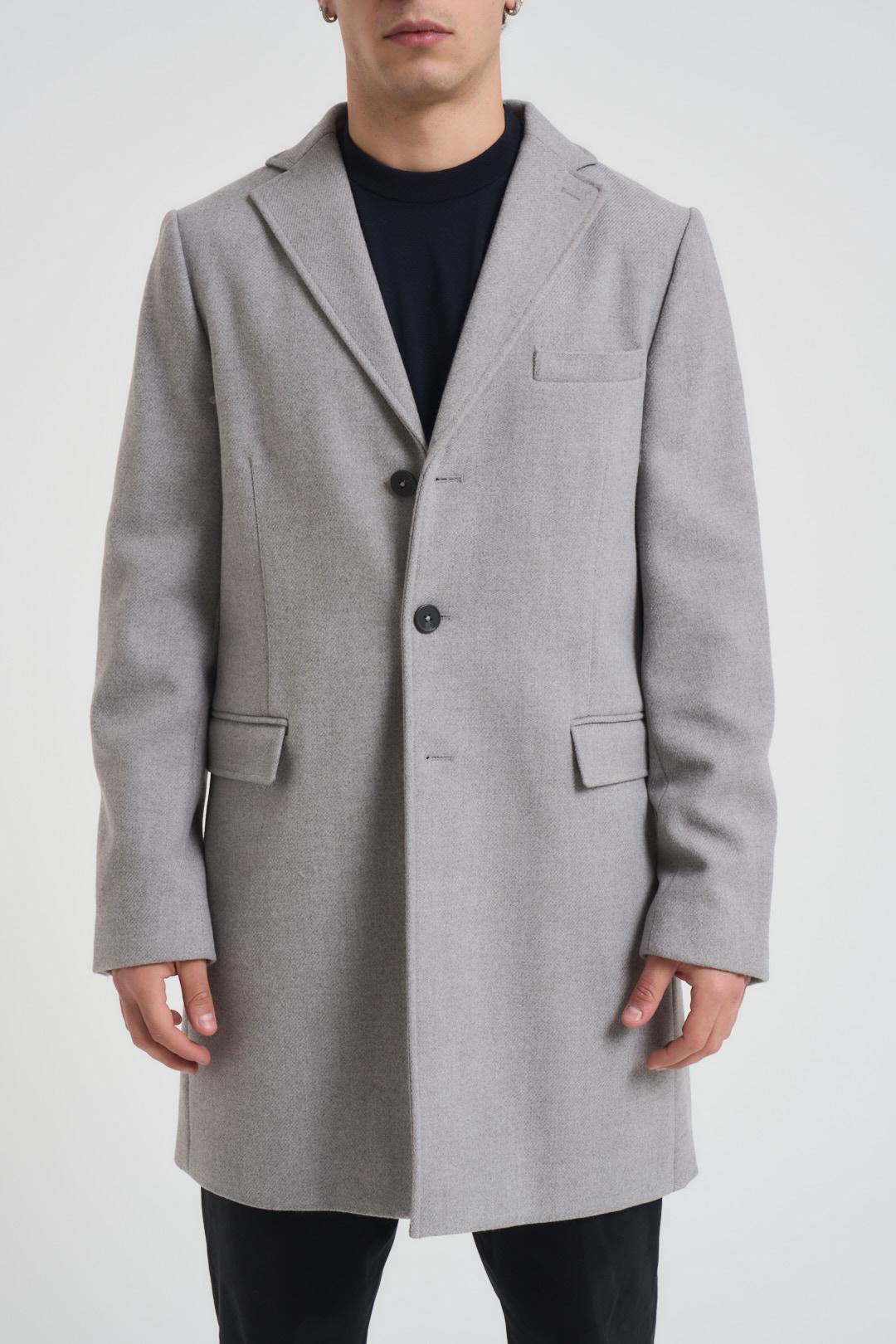 HAMAKI-HO MILANO Cappotto uomo monopetto grigio chiaro. Modello con classico collo con rever classico, manica lunga e chiusura sul fronte con due bottoni. Un taschino sul petto, due tasche laterali a patta e due tasche interne a filetto. Fondo manica con bottoni, spacco centrale sul retro. Regular fit. Composizione: 60% poliestere 20% acrilico 20% rayon. Il modello è alto 190cm e indossa la taglia 50.