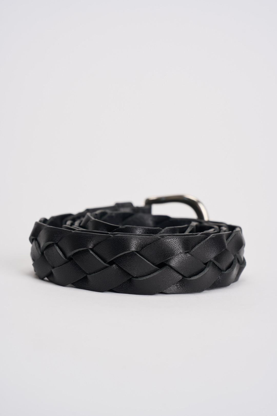 OUTFIT Cintura uomo in pelle intrecciata nera. Modello con hardware argento.