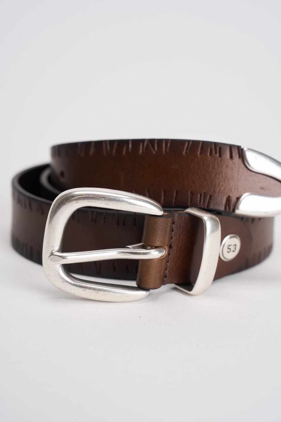 MINORONZONI Cintura uomo in pelle marrone. Modello con hardware argento.