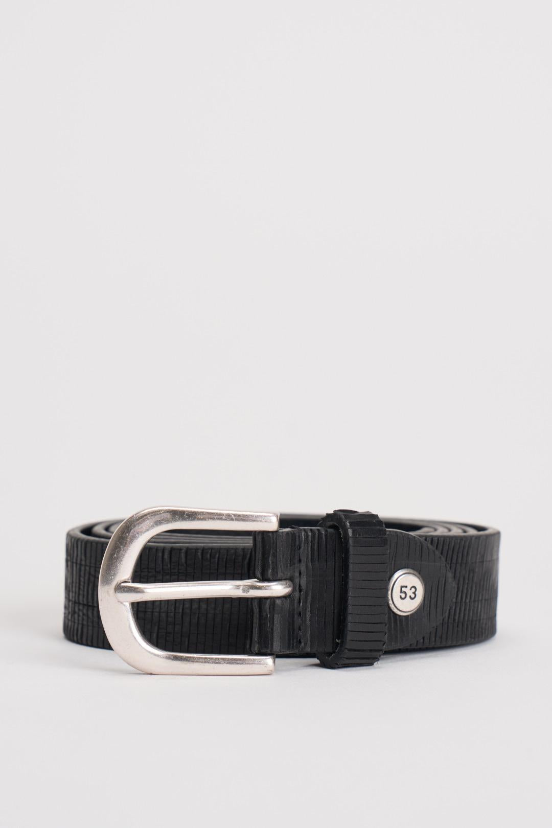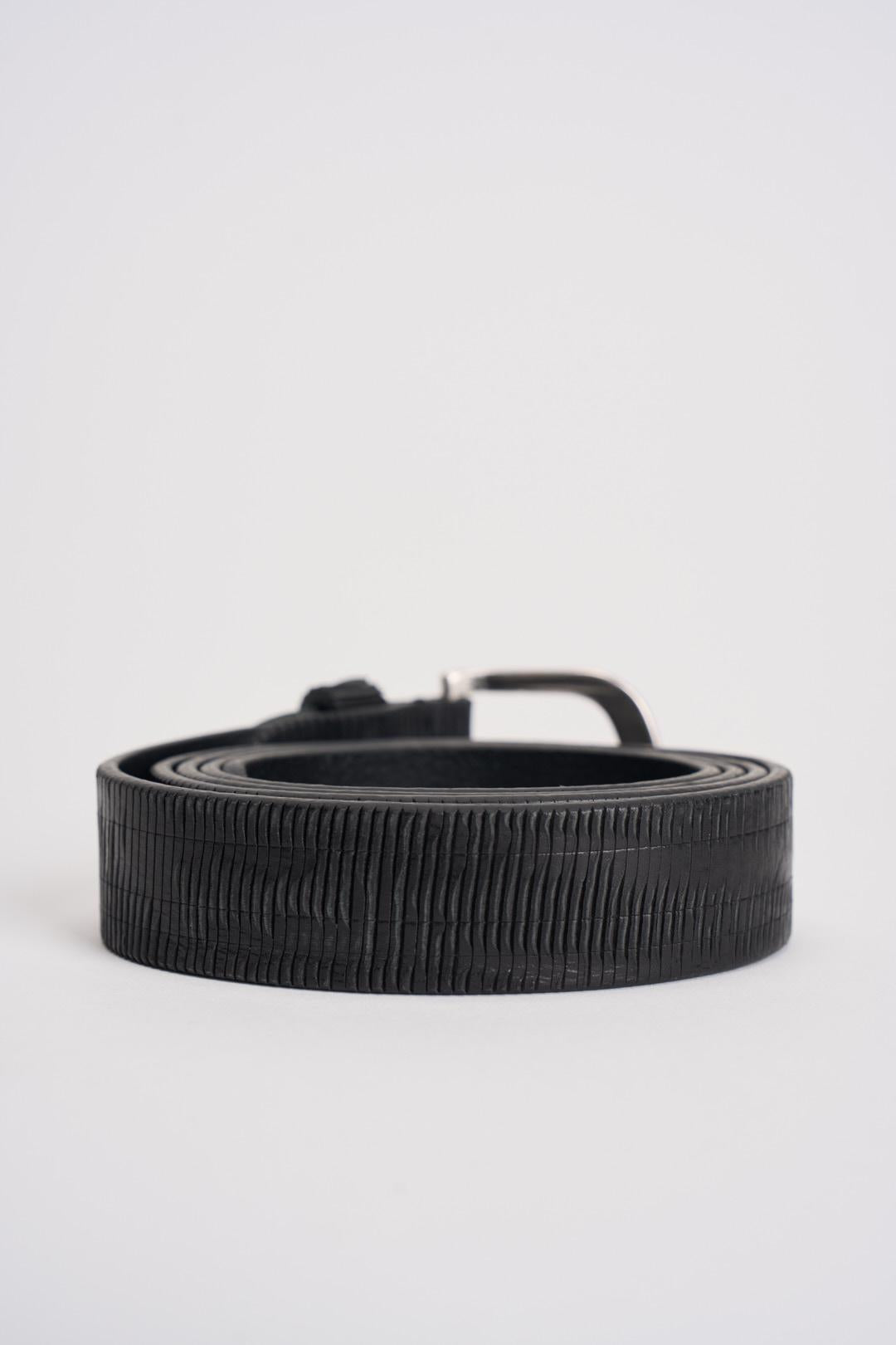 MINORONZONI Cintura uomo in pelle nera. Modello con hardware argento.