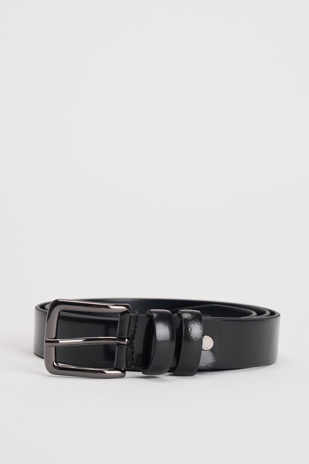 OUTFIT Cintura uomo in pelle nera. Modello con hardware argento.