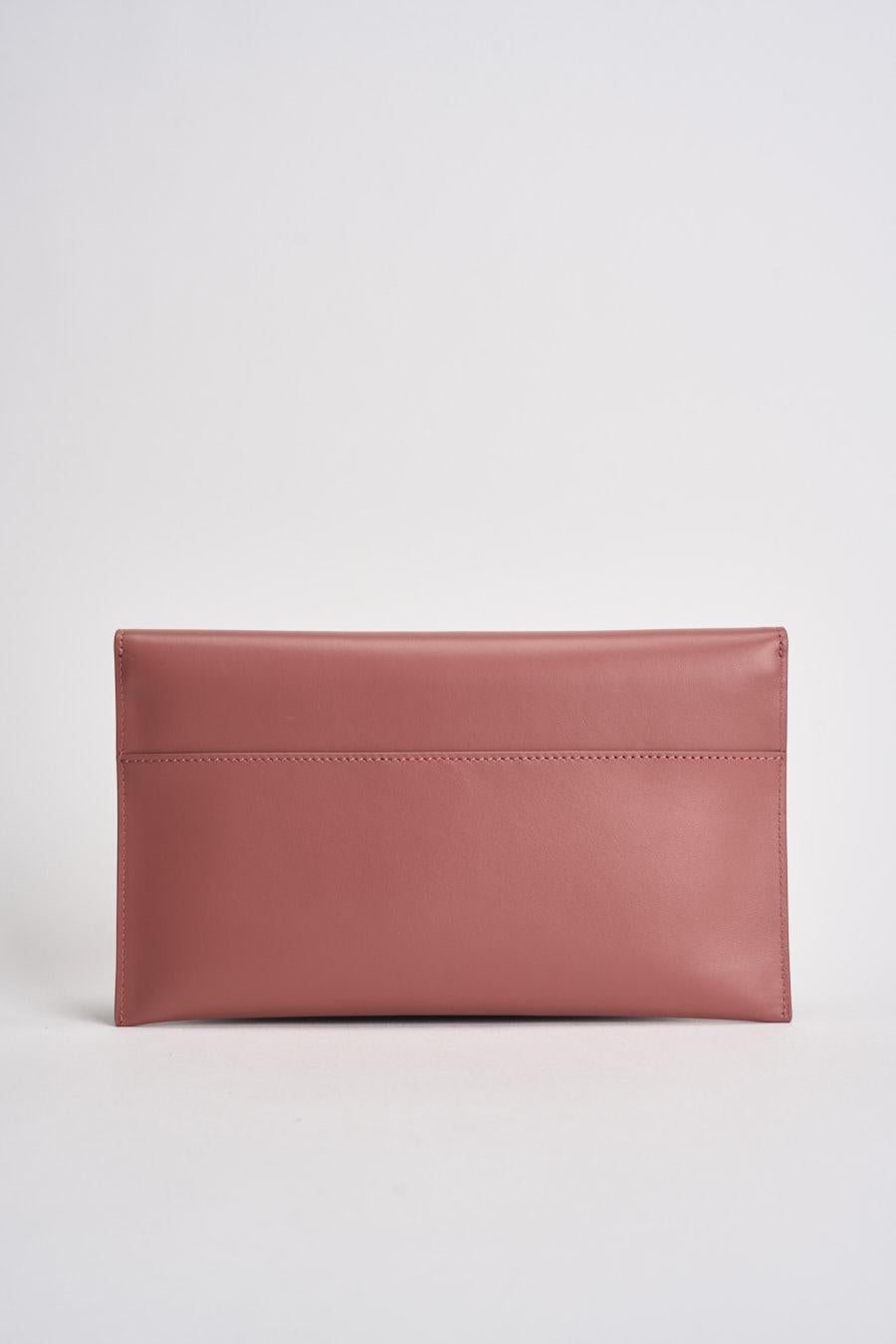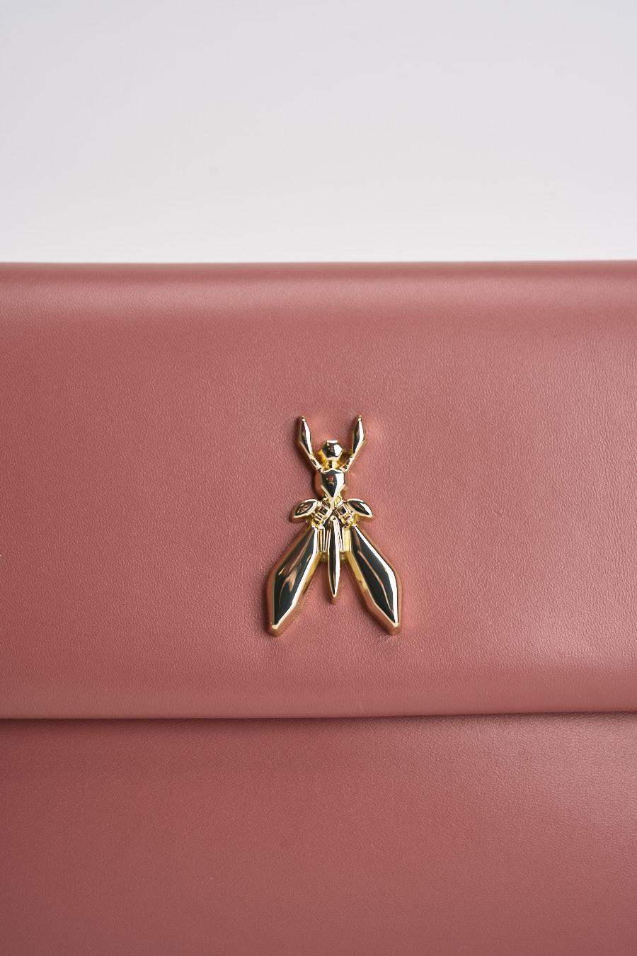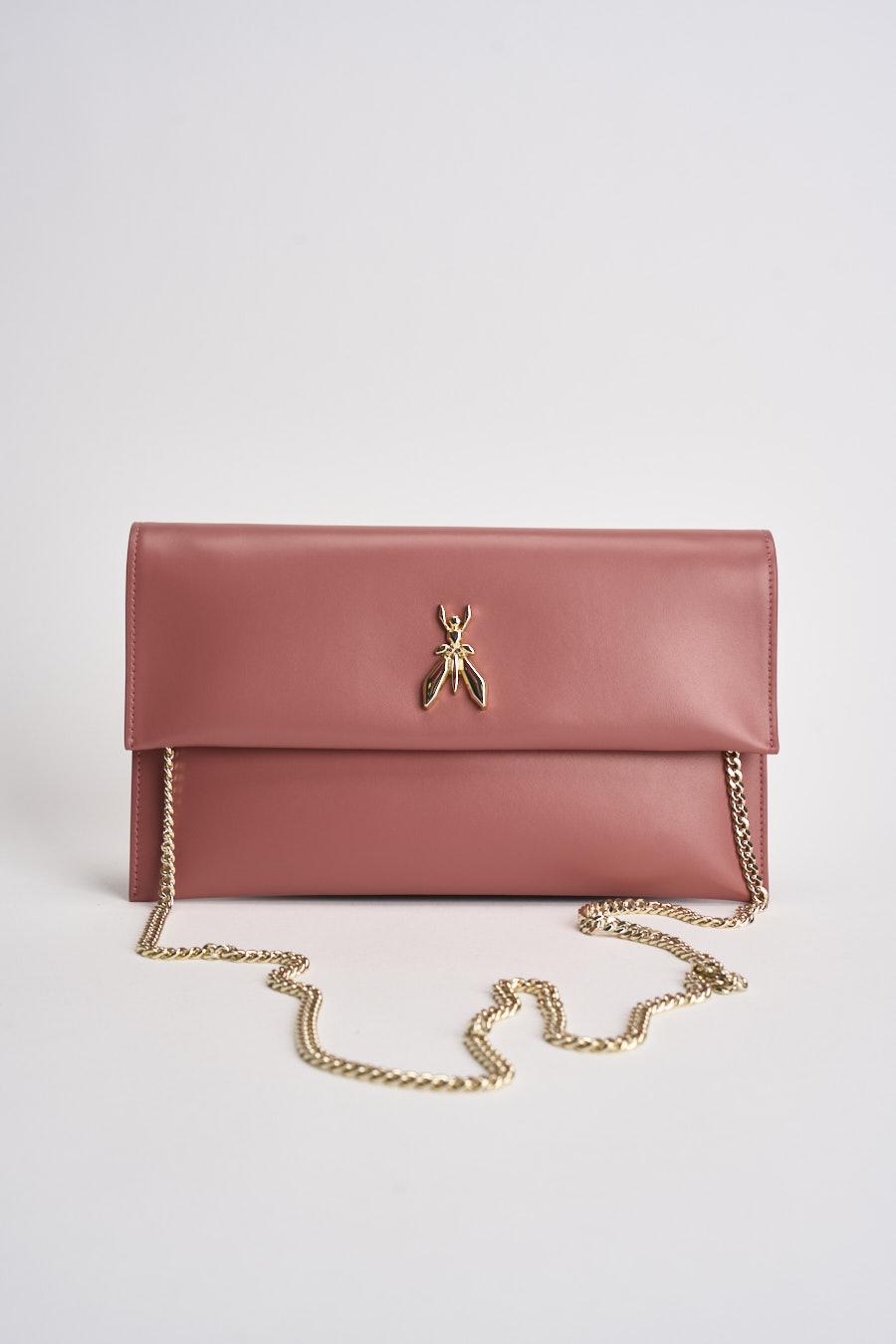 PATRIZIA PEPE Clutch donna in pelle malva. Modello a mano o a tracolla, Fly sulla patta dorato e tracollina metallica. Composizione: 100%pelle. Misure: 28x16x2cm.