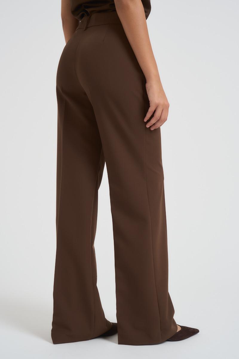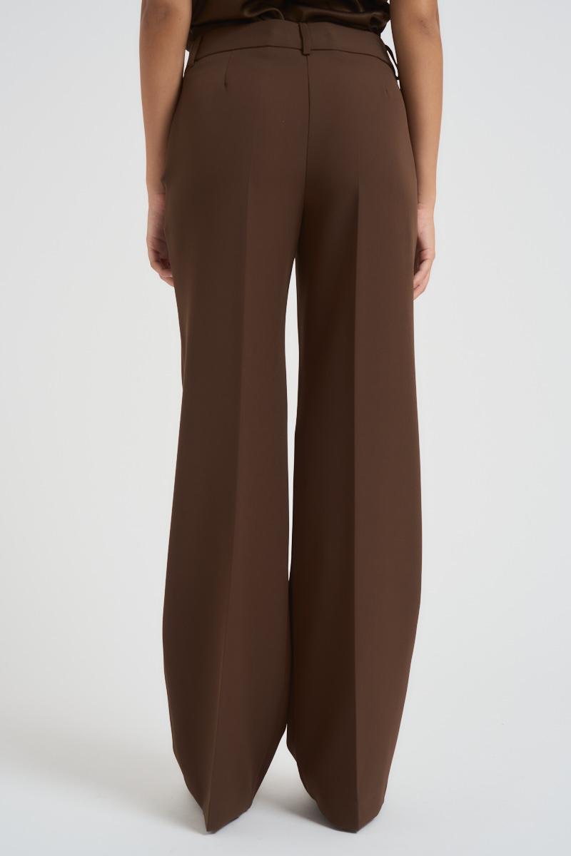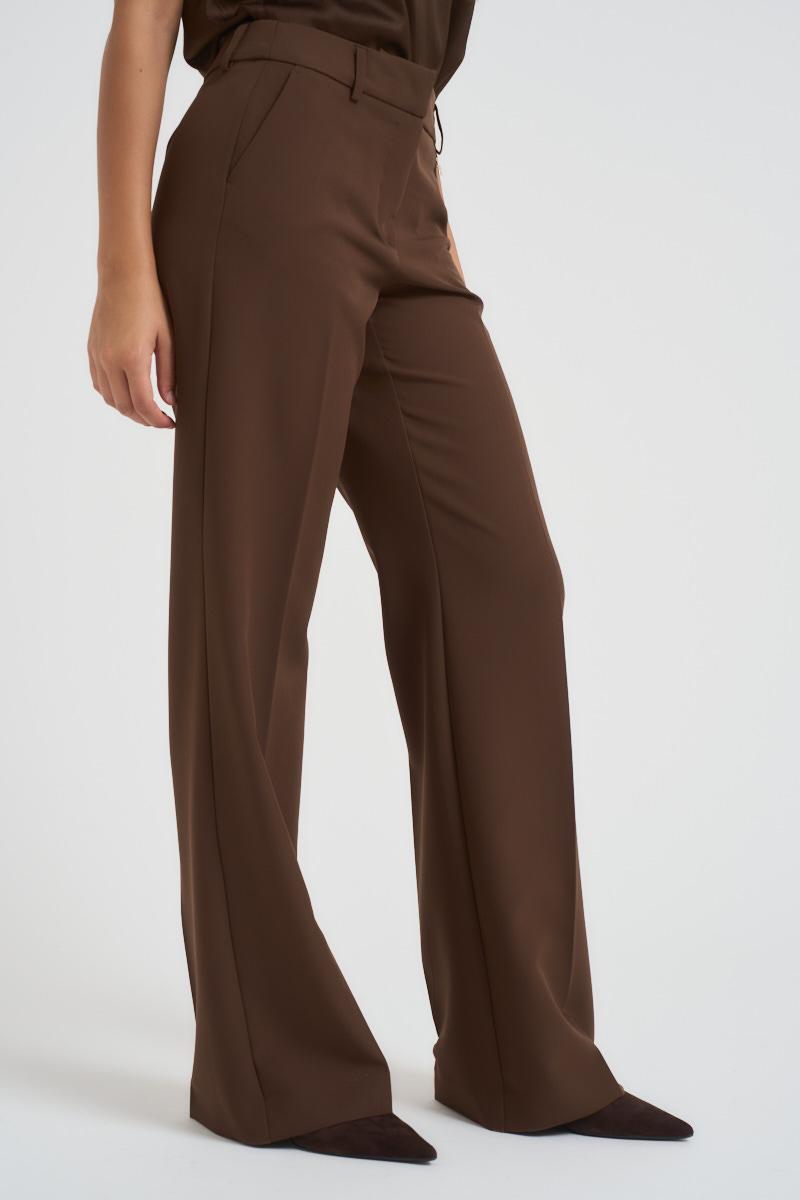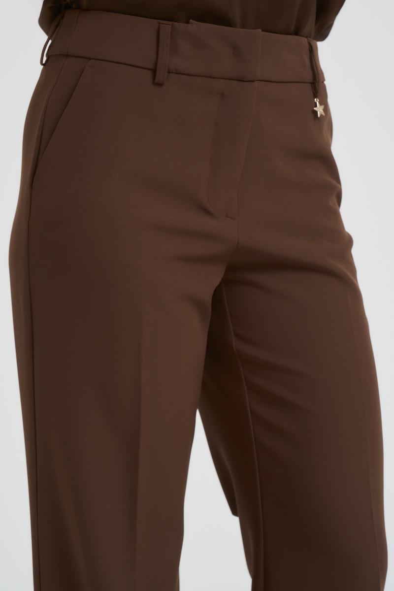 SOUVENIR CLUBBING Completo abito donna marrone. Giacca monopetto a un bottone con due tassche con pattina. Pantalone a palazzo gamba dritta, chiusura zio e bottone. Composizione: 89% poliestere 11% elastane. La modella è alta 176 cm e indossa la taglia S.