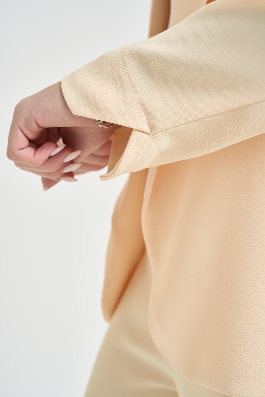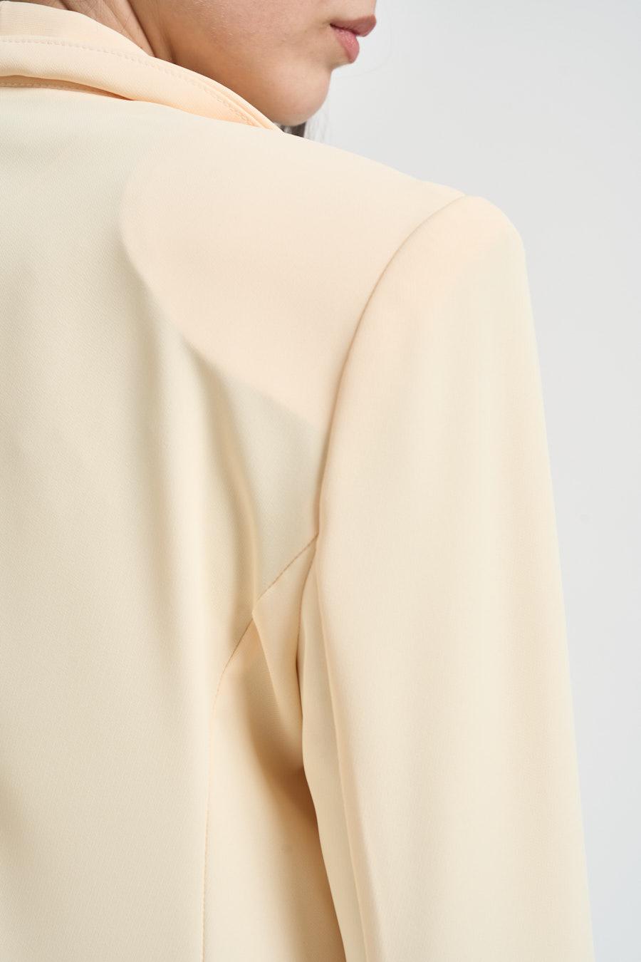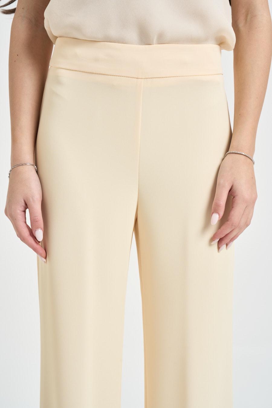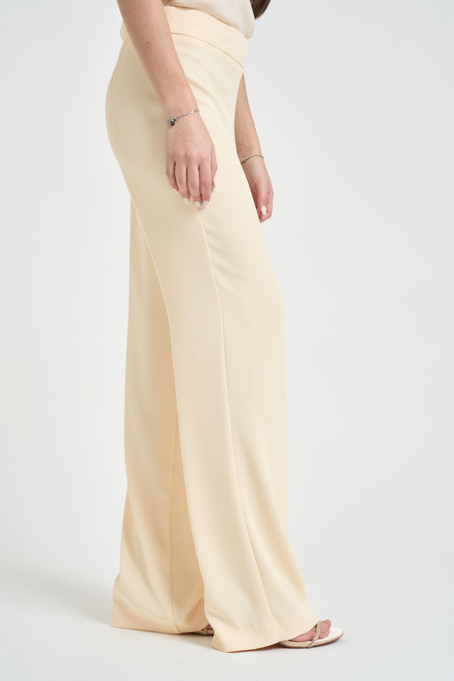 KAOS Completo donna monopetto giallo pastello. Modello composto da giacca con rever lungo, tasche a filetto e maniche rifinite da polsini stondati con spacchi laterali. Pantaloni a gamba dritta, chiusi da zip invisibile sul lato. Composizione: 96% Polyestere 4% Elastane. La modella è alta 172cm e indossa la taglia 40.