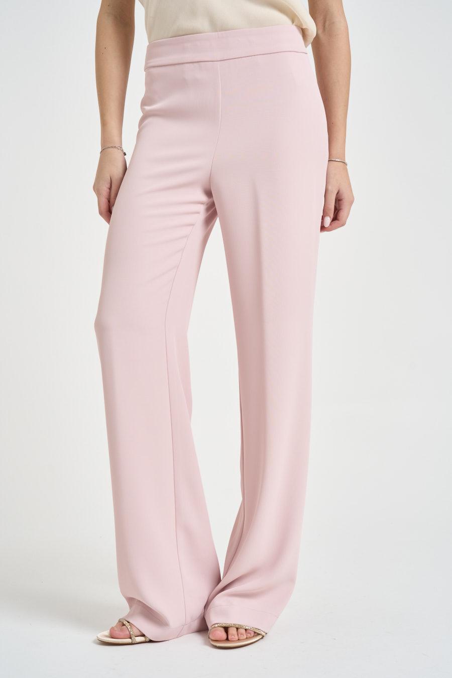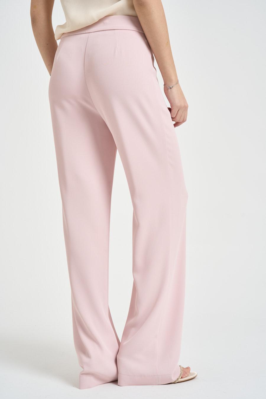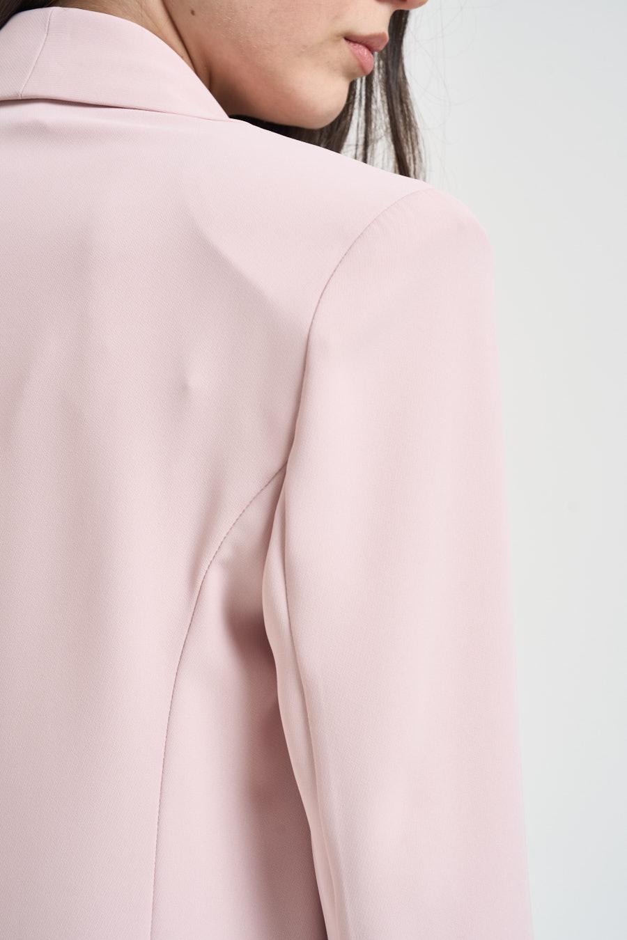 KAOS Completo donna monopetto rosa pastello. Modello composto da giacca con rever lungo, tasche a filetto e maniche rifinite da polsini stondati con spacchi laterali. Pantaloni a gamba dritta, chiusi da zip invisibile sul lato. Composizione:96% Polyestere; 4% Elastane. La modella è alta 172cm e indossa la taglia 40.