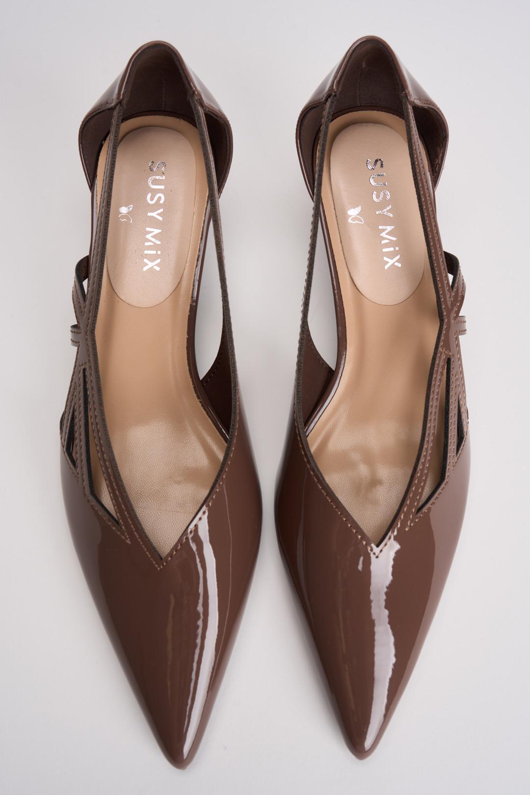 SUSY MIX Décolleté donna in vernice tortora. Modello con tacco 3cm, dettagli cut out laterali e punta. Composizione: poliuretano. Calzata regolare.