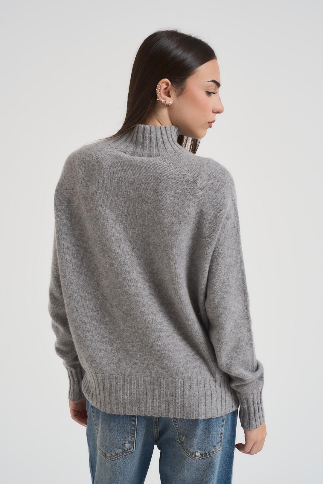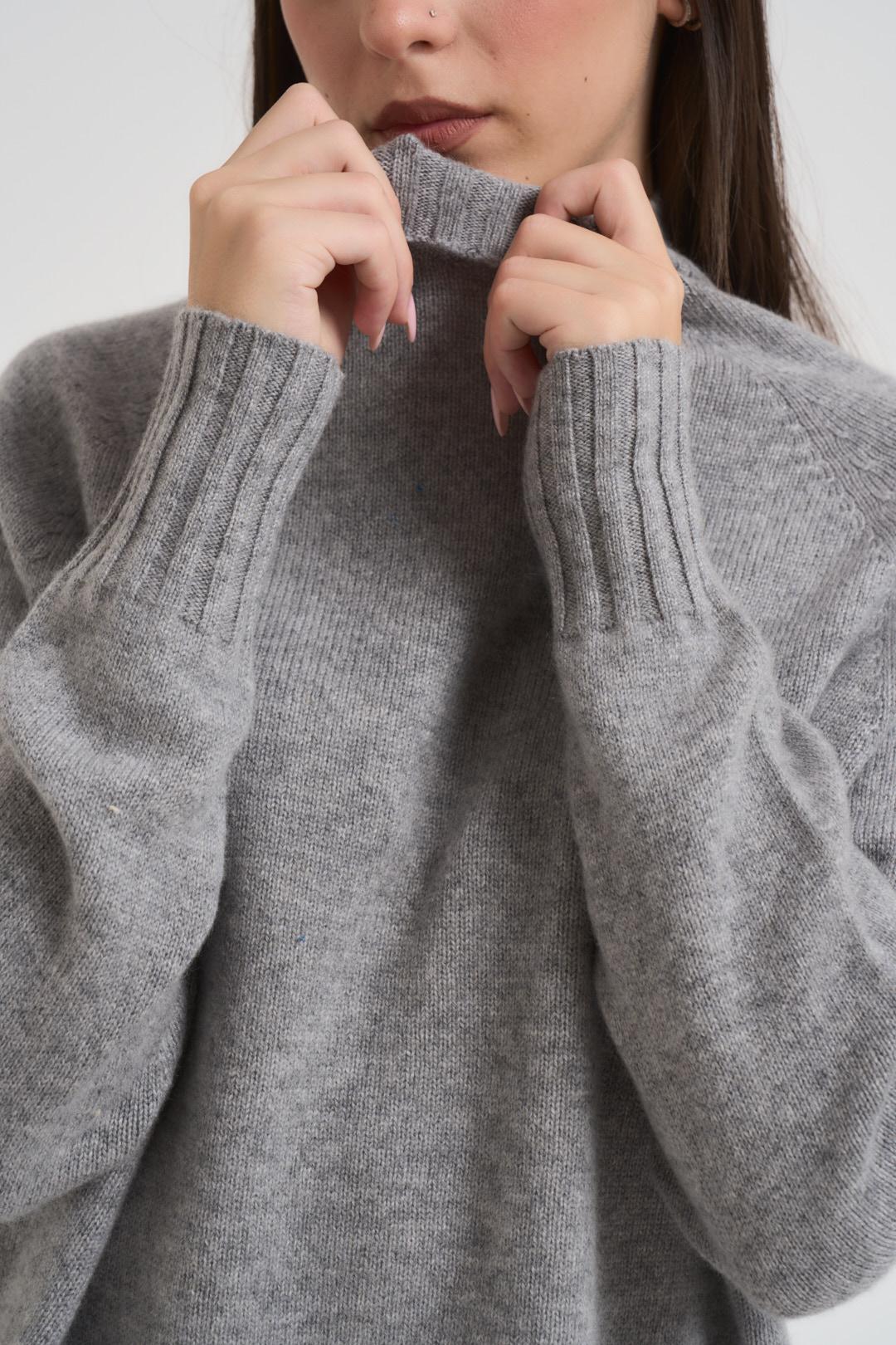 SOLOCASCMIR Dolcevita donna grigio chiaro. Modello con dettagli a coste, regular fit, spalla scesa. Composizione: 100% Cashmere. La modella è alta 172 cm e indossa la taglia S.