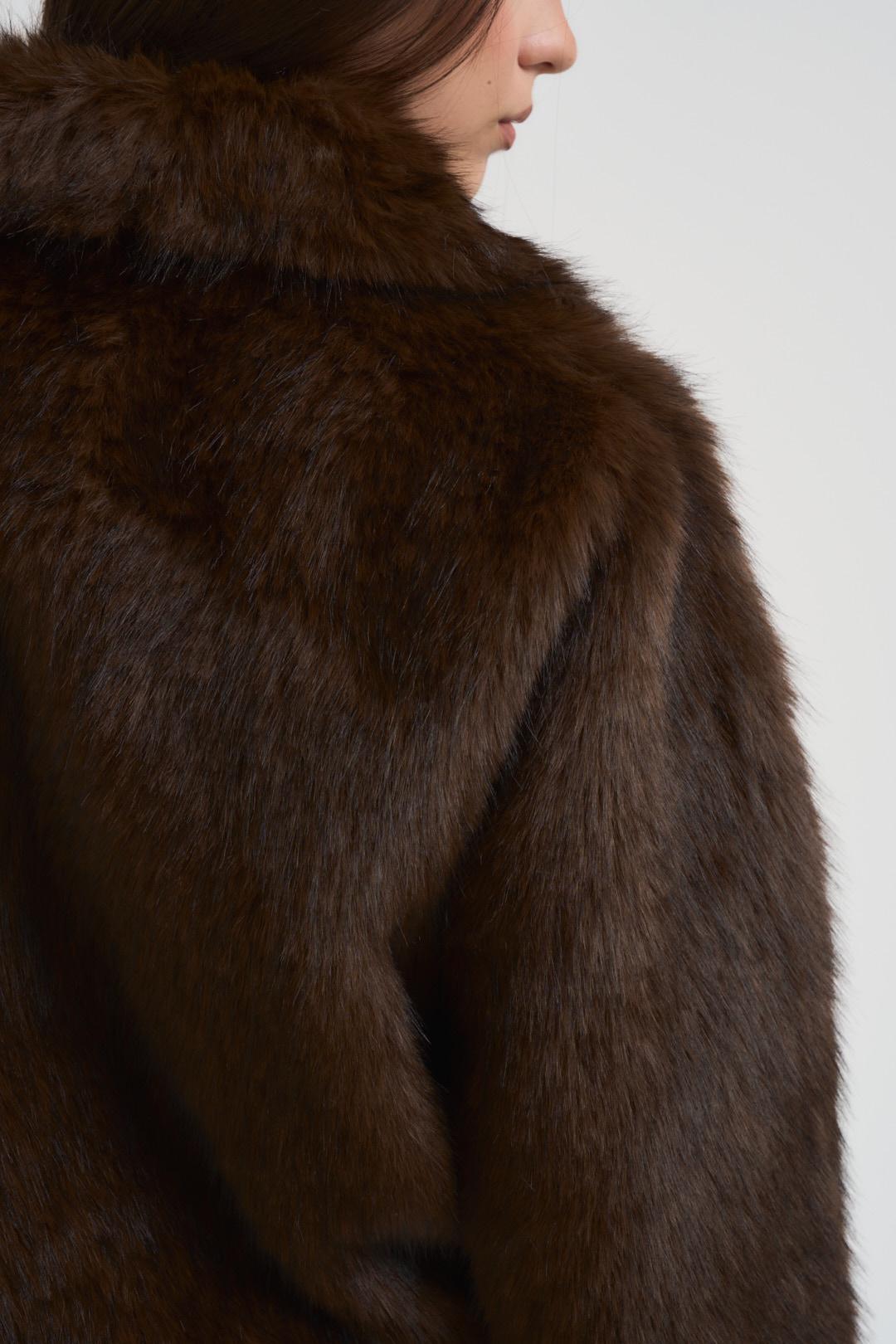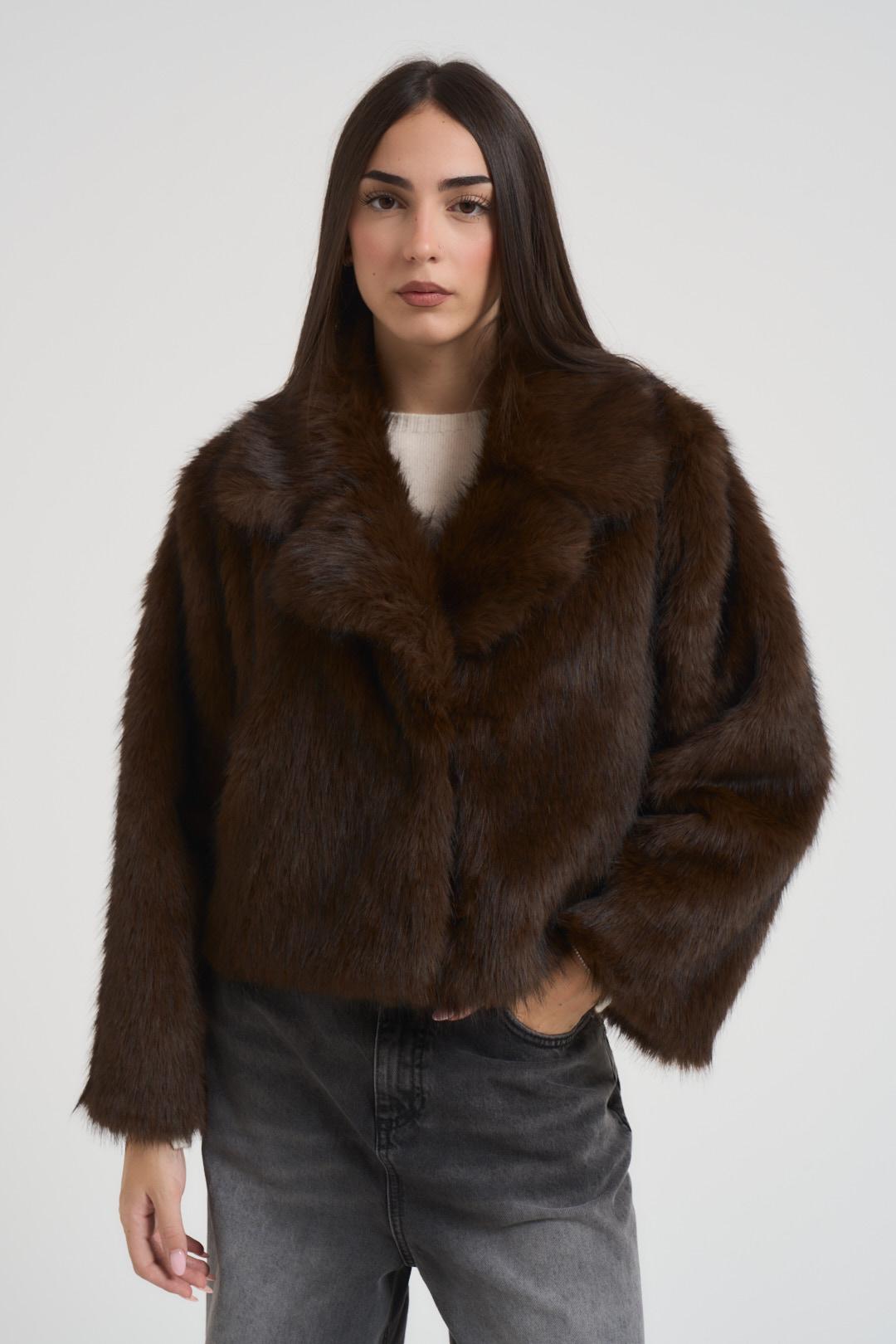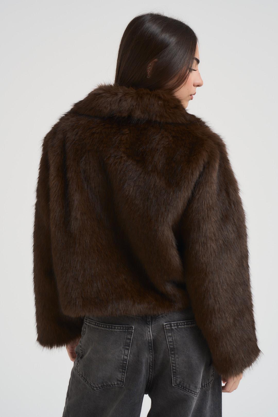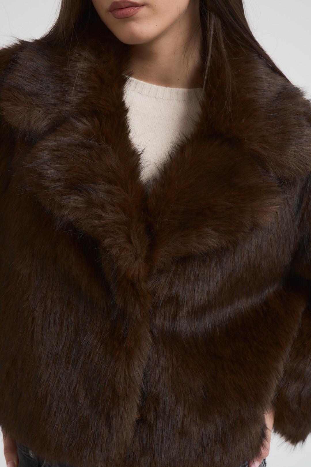 PHILIA Ecopelliccia corta donna moro. Modello con chiusura bottoni a pressione, Composizione: 100% poliestere. La modella è alta 172 cm e indossa la taglia S.