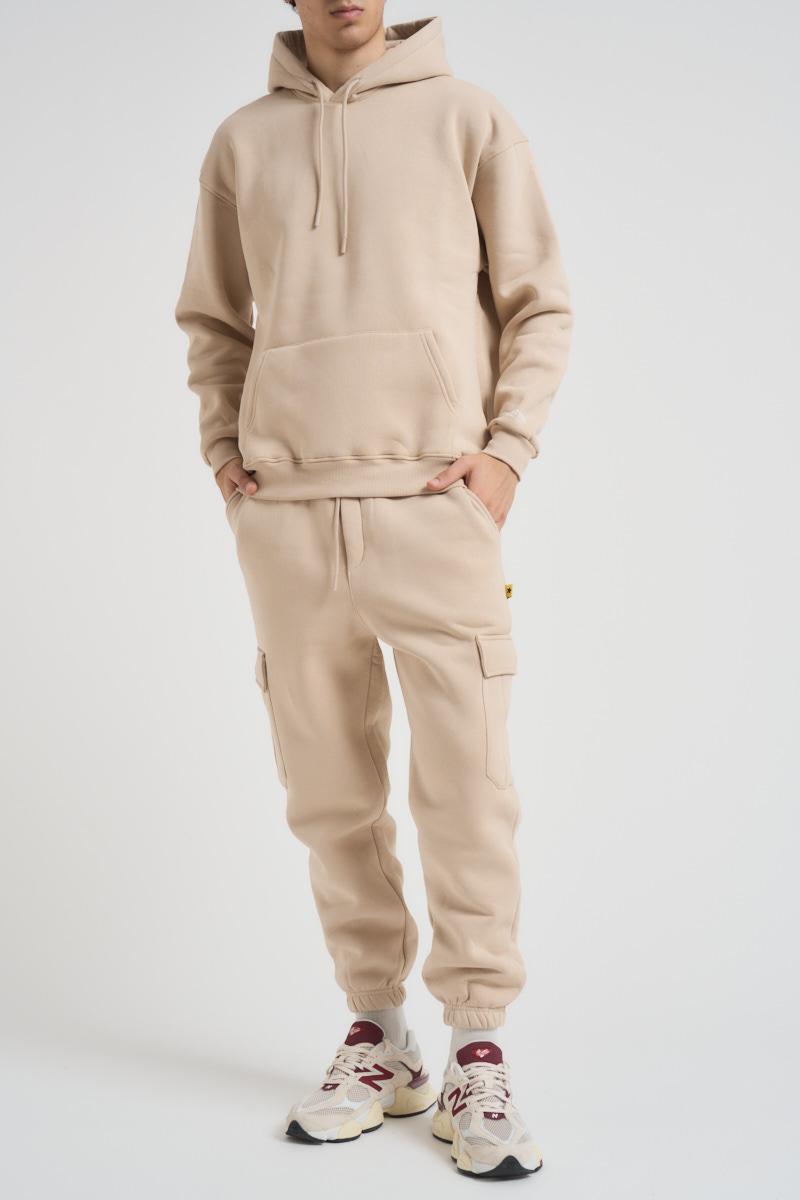 SUPERCULTURE Felpa uomo con cappuccio beige. Modello con tasca a marsupio sul davanti, cappuccio con coulisse, stampa brand in bianco sulla manica a sinistra. Boxy fit. Composizione: 65% cotone 35% poliestere. Il modello è alto 190 cm e indossa la taglia L.