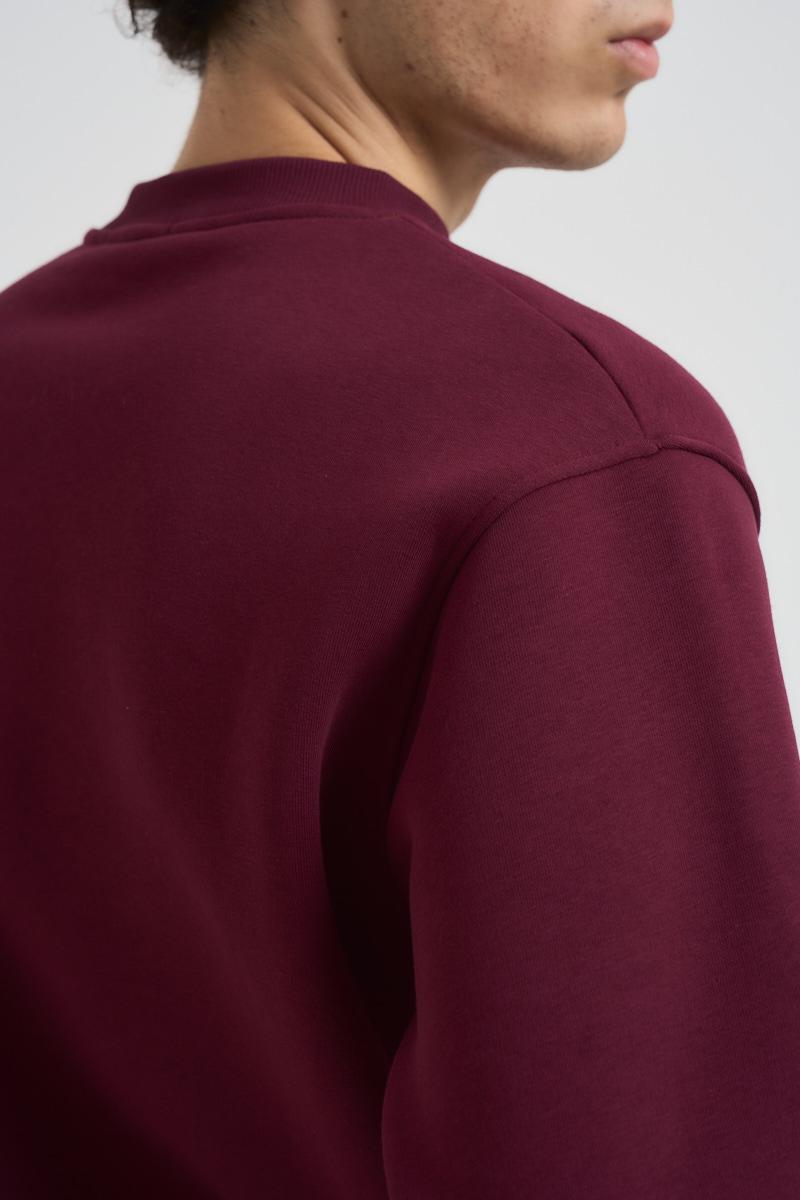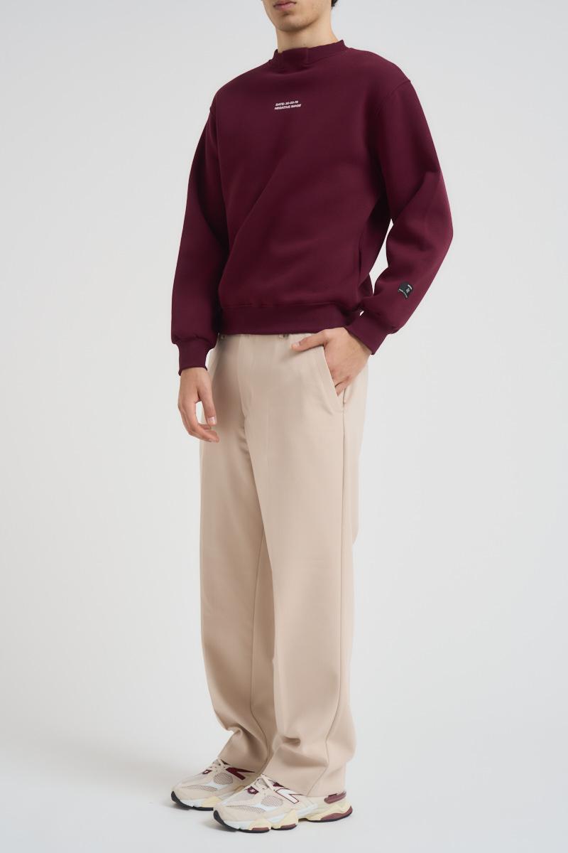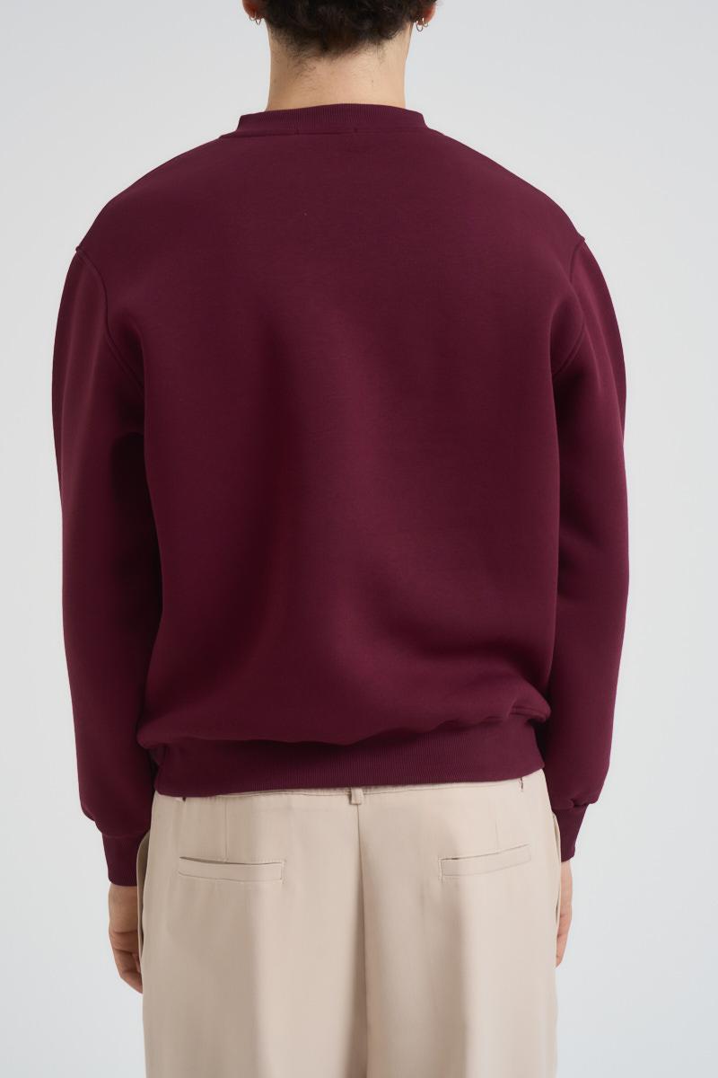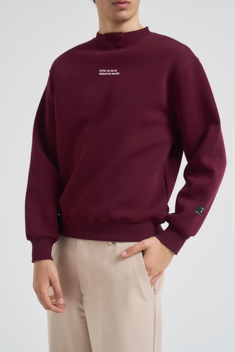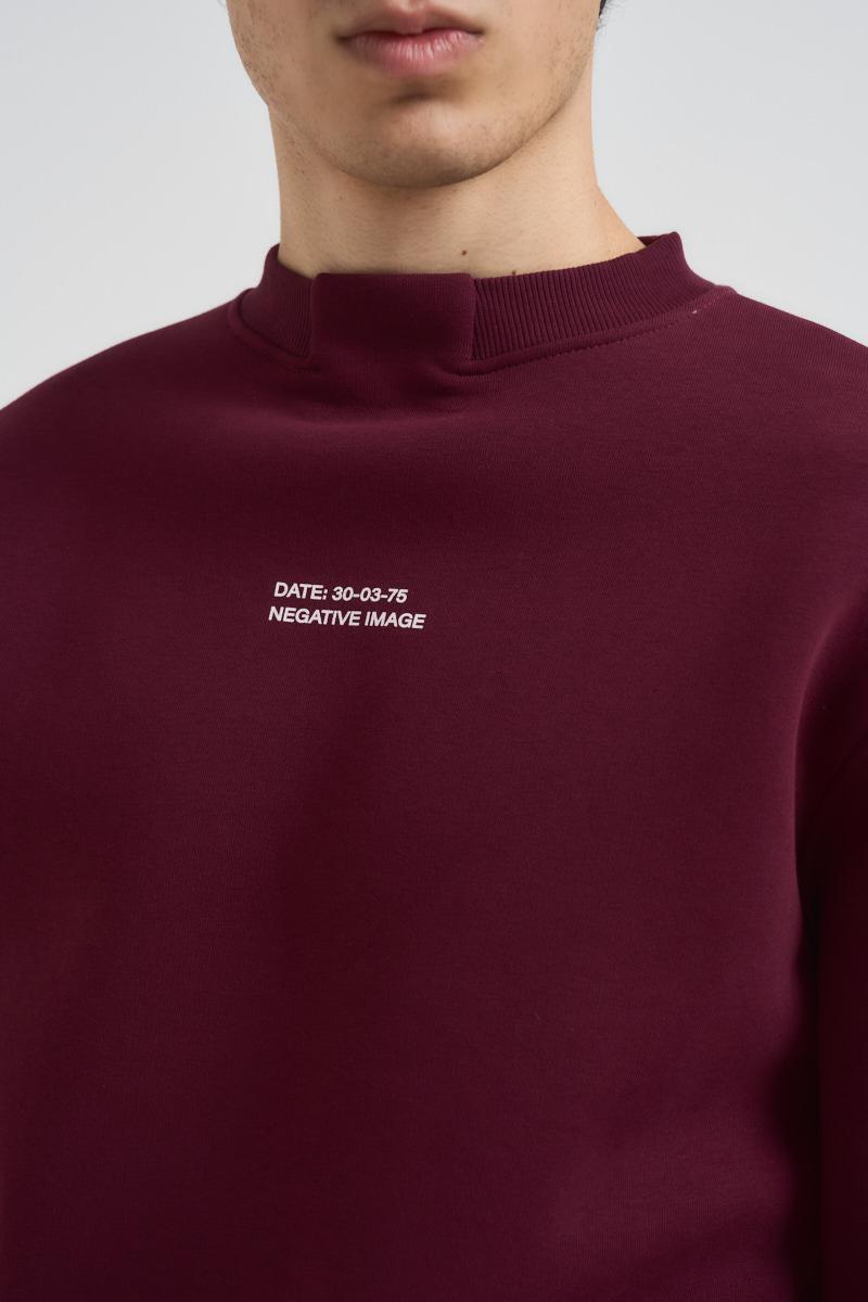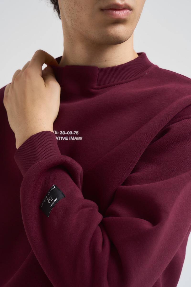 IMPERIAL Felpa uomo girocollo bordeaux. Modello a manica lunga con polsini a costine, stampa bianca frontale, etichetta sulla manica. Composizione: 100% cotone. Il modello è alto 190 cm e indossa la taglia L.