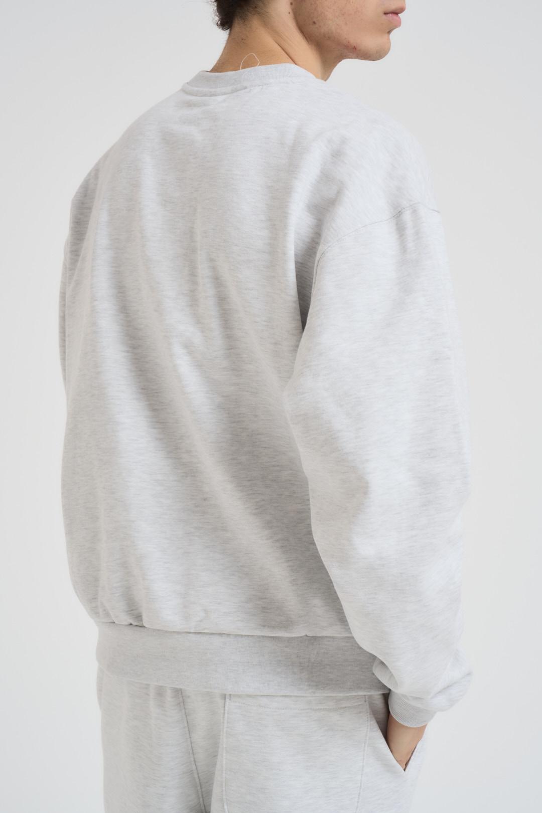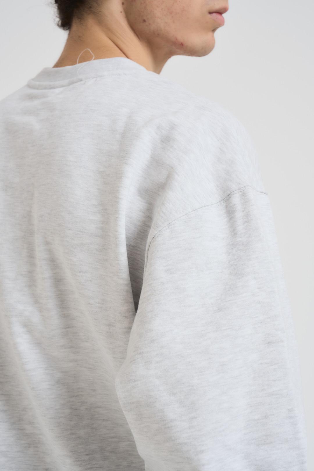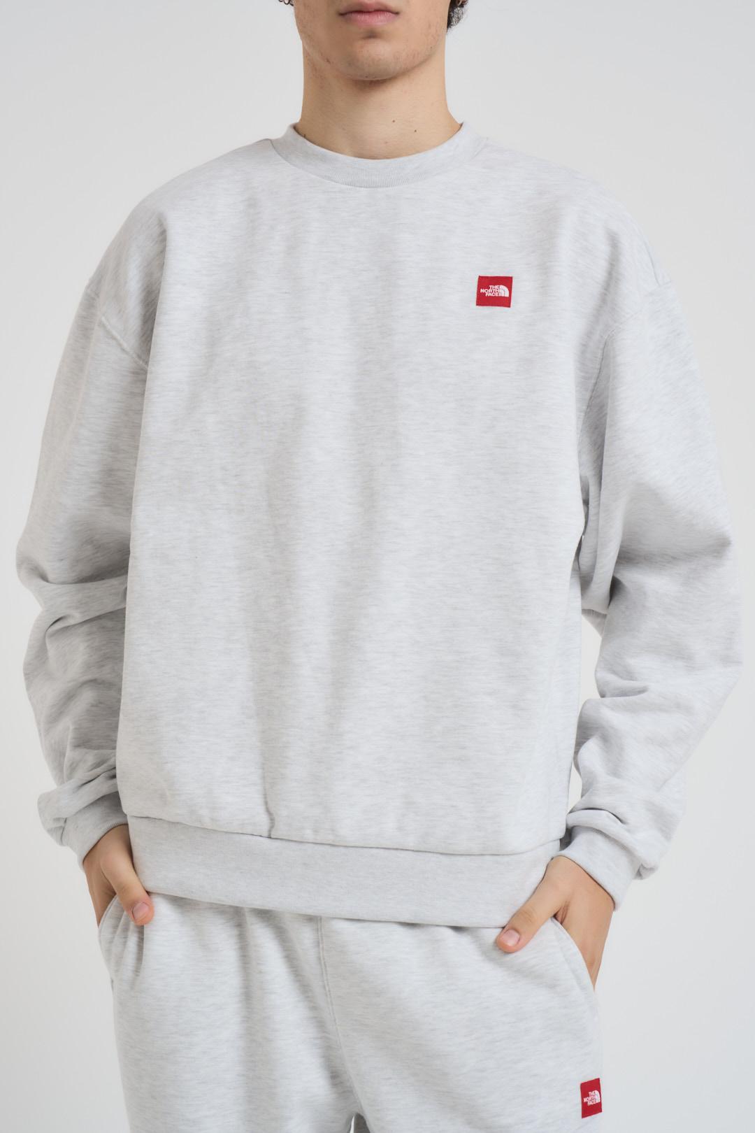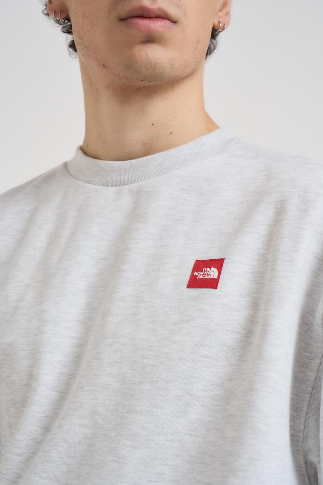 THE NORTH FACE Felpa uomo girocollo grigia Red Box. Modello a manica lunga, regular fit con stampa logo sul petto a sinistra. Composizione: 100% cotone. Il modello è alto 190cm e indossa la taglia M.