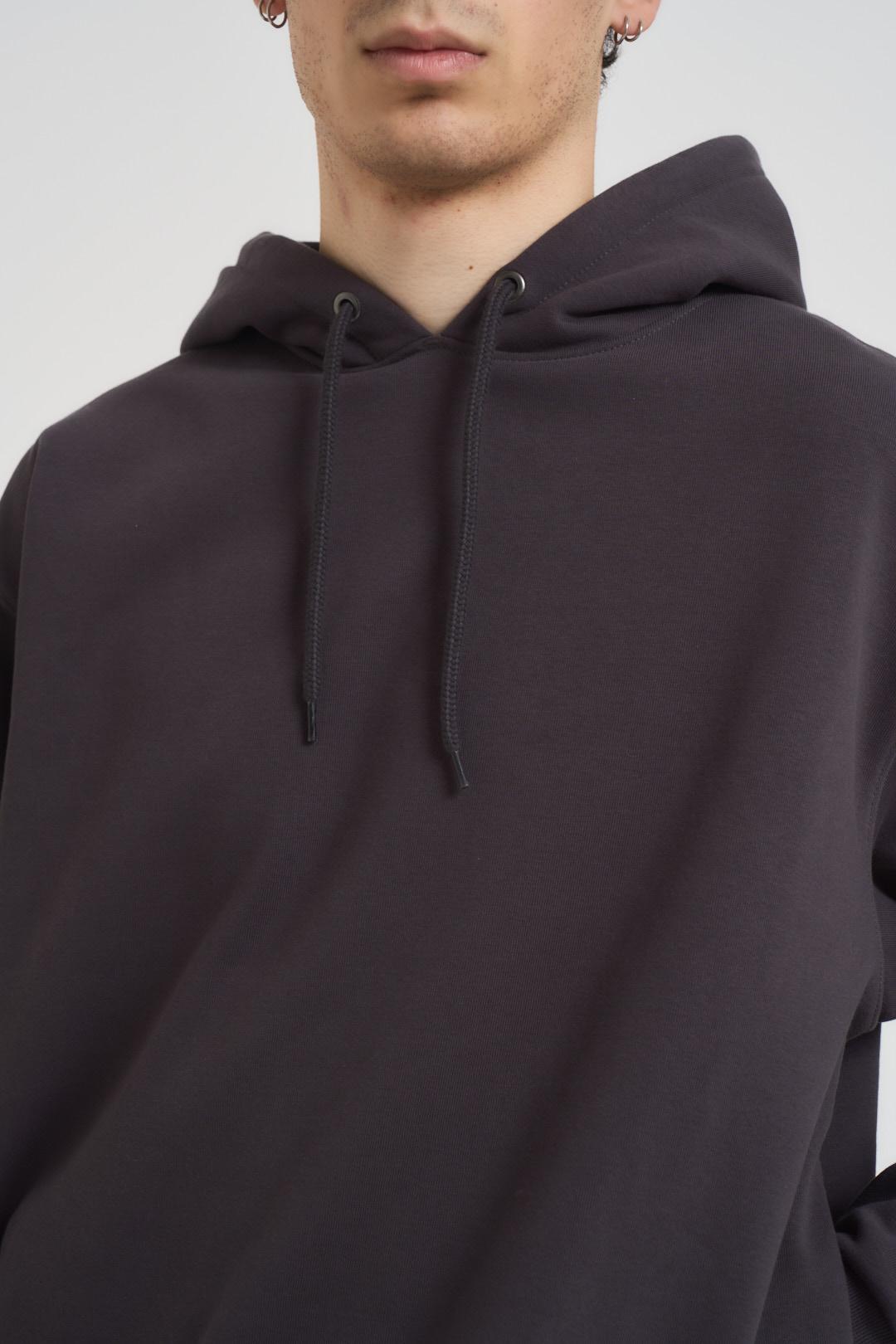 THE NORTH FACE Felpa uomo grigio antracite Red Box. Modello con cappuccio a manica lunga, regular fit con stampa logo sul petto a sinistra. Composizione: 100% cotone. Il modello è alto 190cm e indossa la taglia M.
