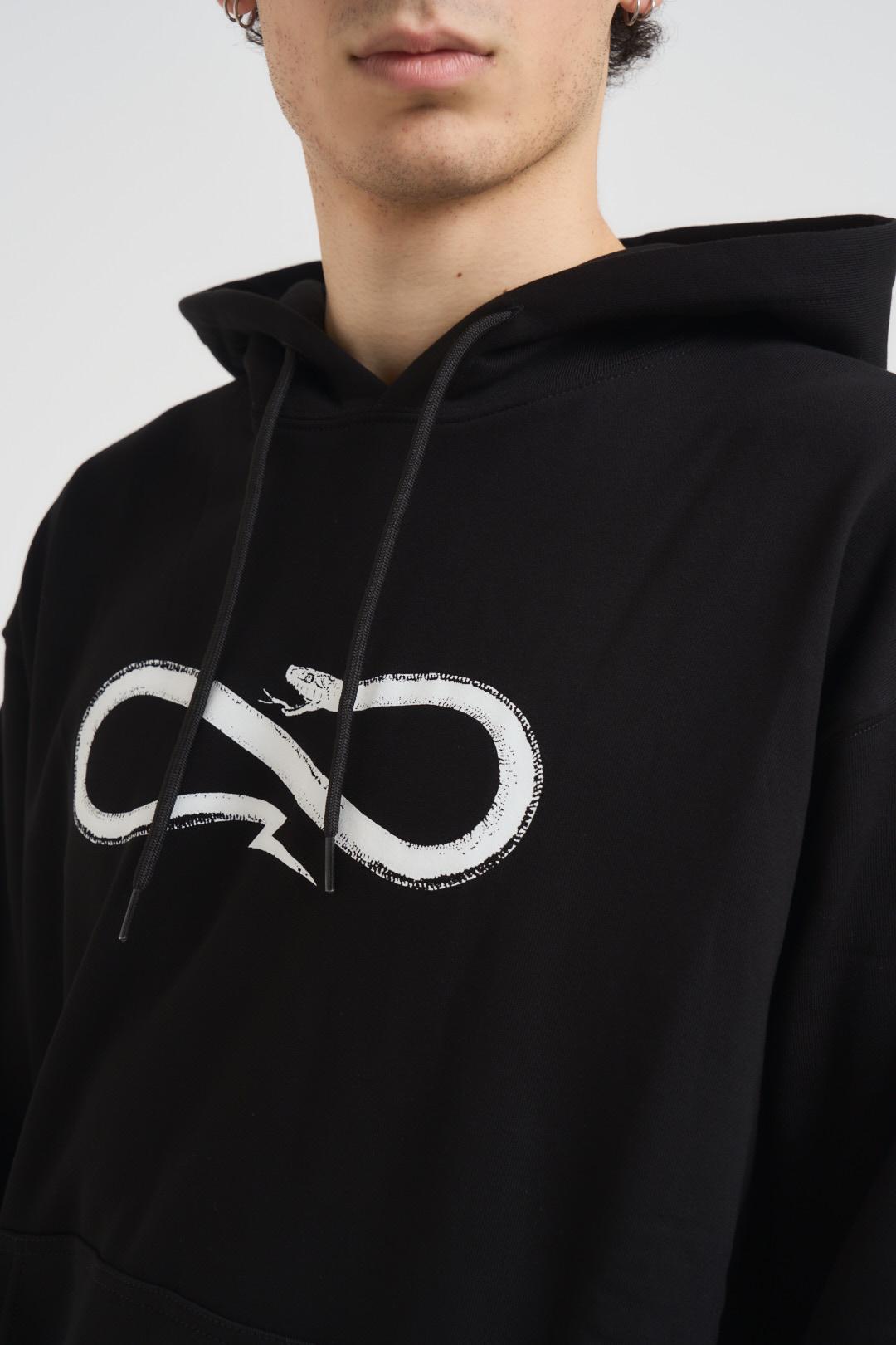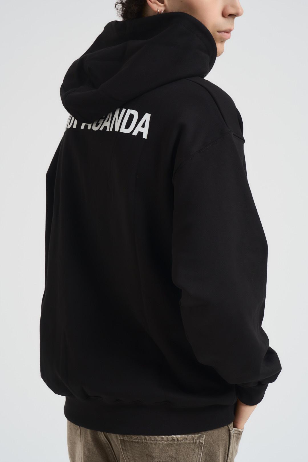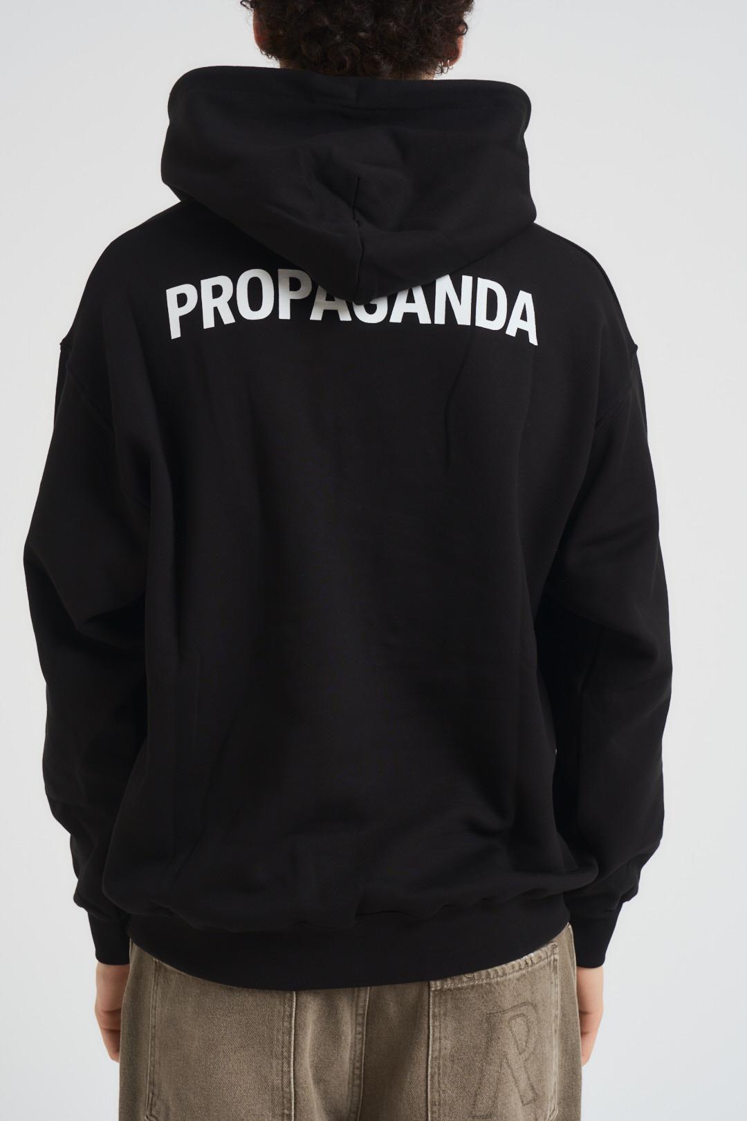 PROPAGANDA Felpa uomo Logo Classic nera. Modello con cappuccio. Stampa serigrafica s fronte e retro. Tasca a marsupio. Coulisse al collo. Costina ai polsi e in vita. Label personalizzata al fianco sinistro. Composizione: 100% Cotone. Il modello è alto 190 cm e indossa la taglia L.
