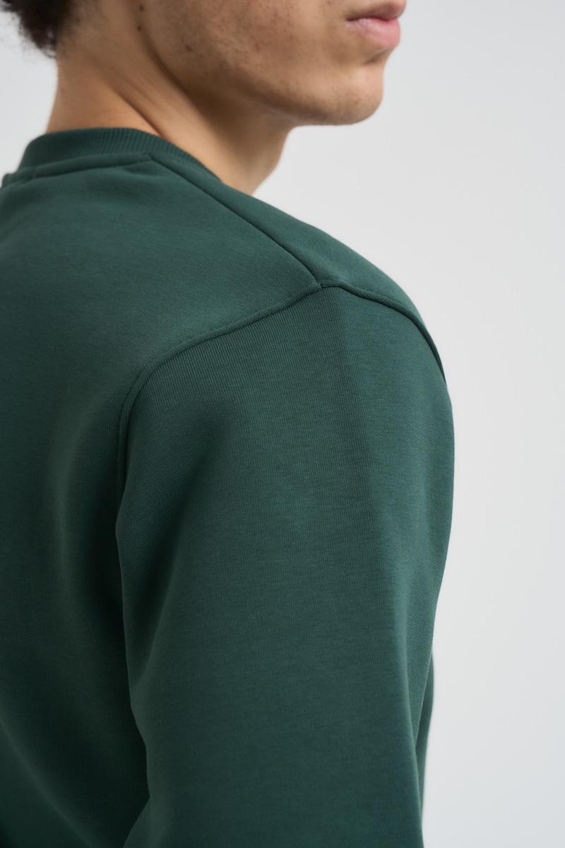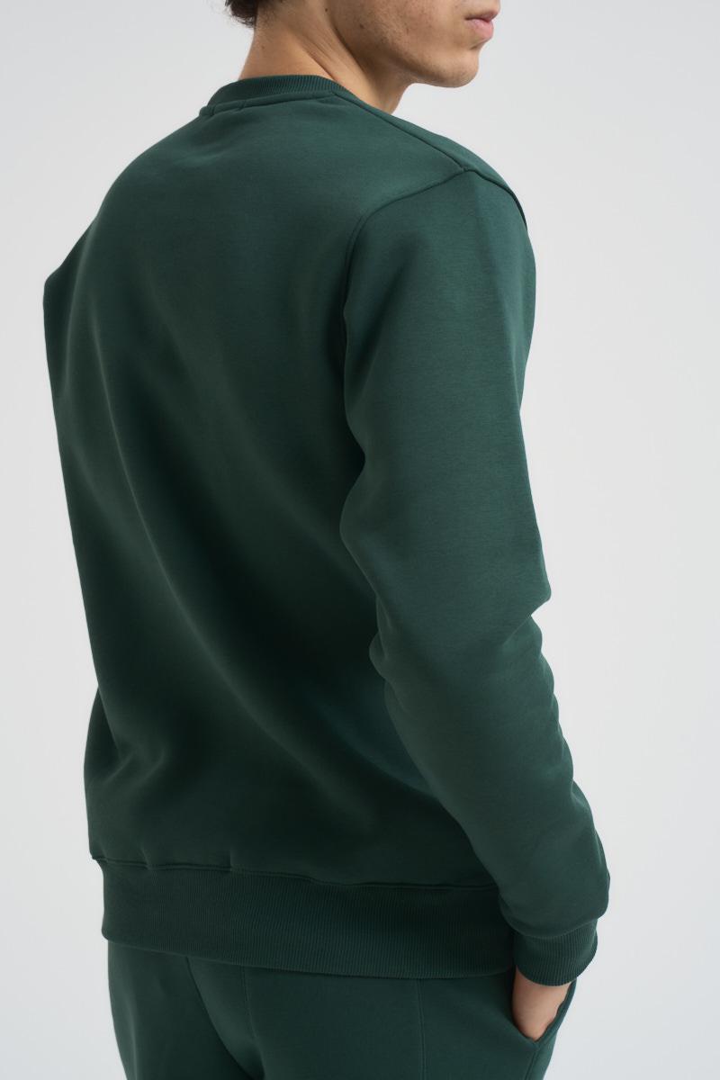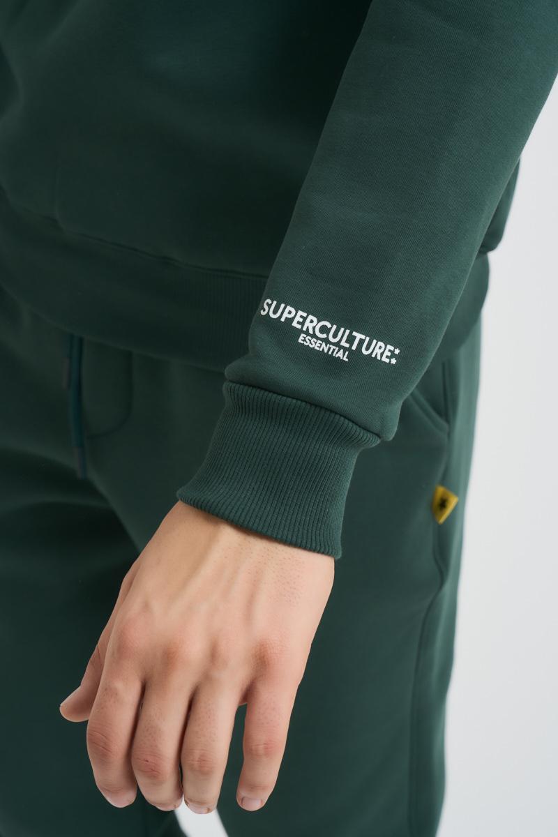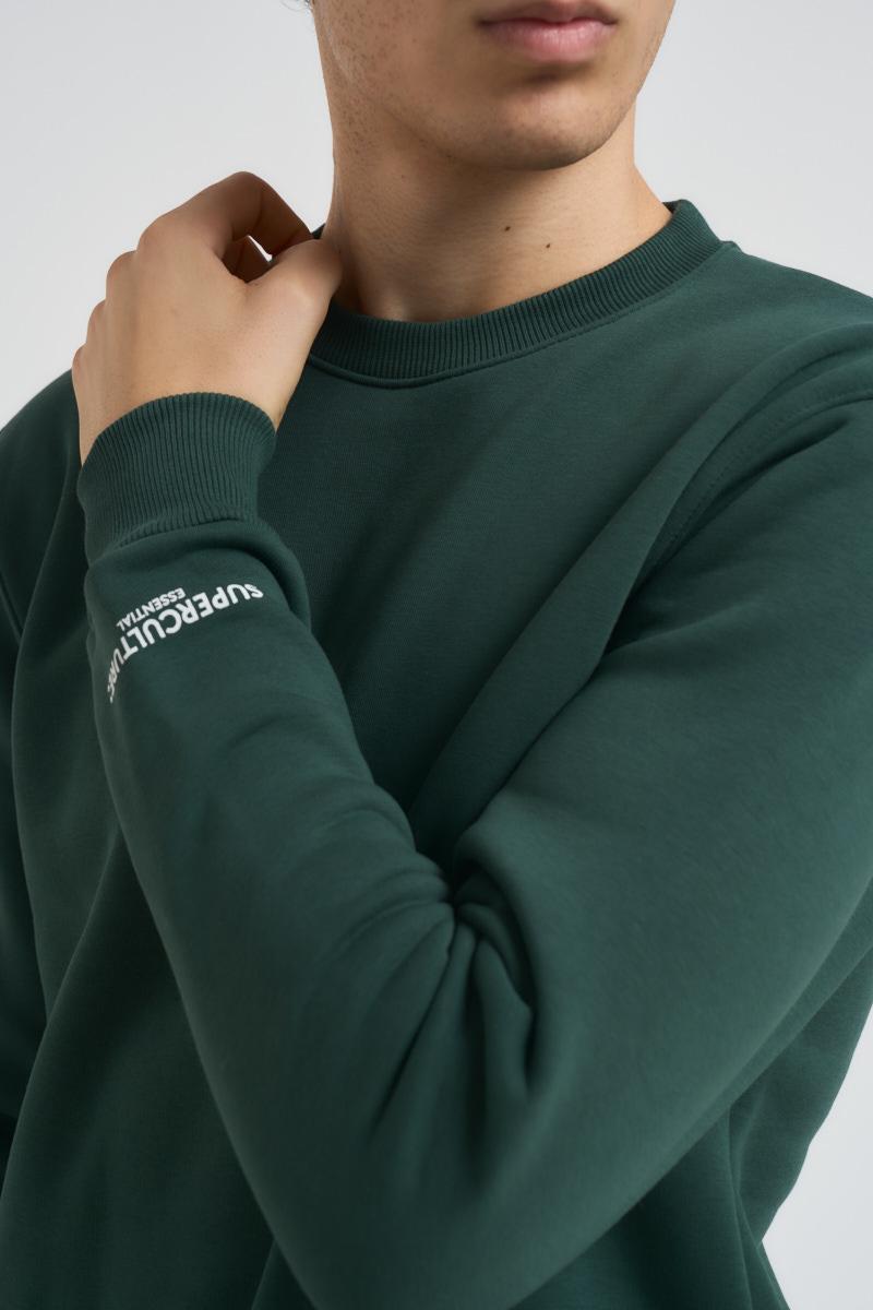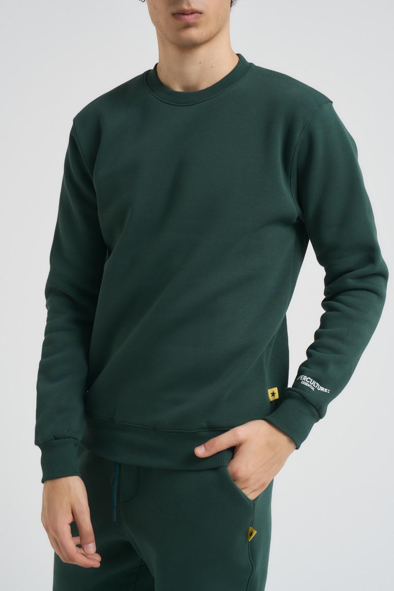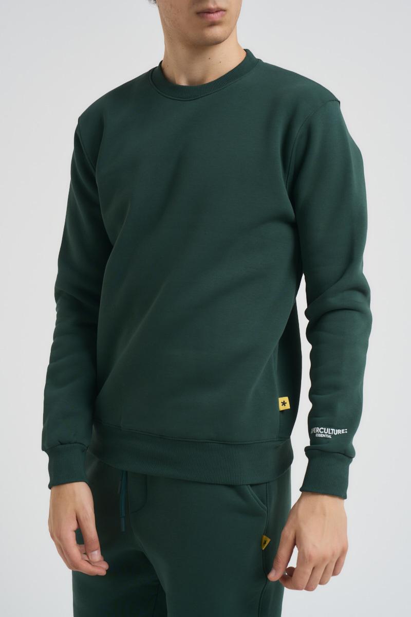 SUPERCULTURE Felpa uomo verde a girocollo. Polsini, collo e fondo a costine. Composizione: 65% Cotone 35% Poliestere. Il modello è alto 190cm e indossa la taglia L.