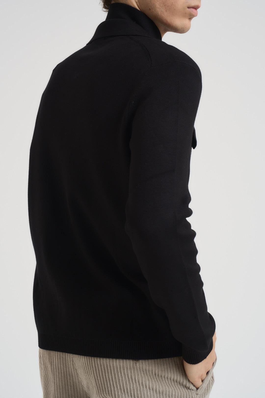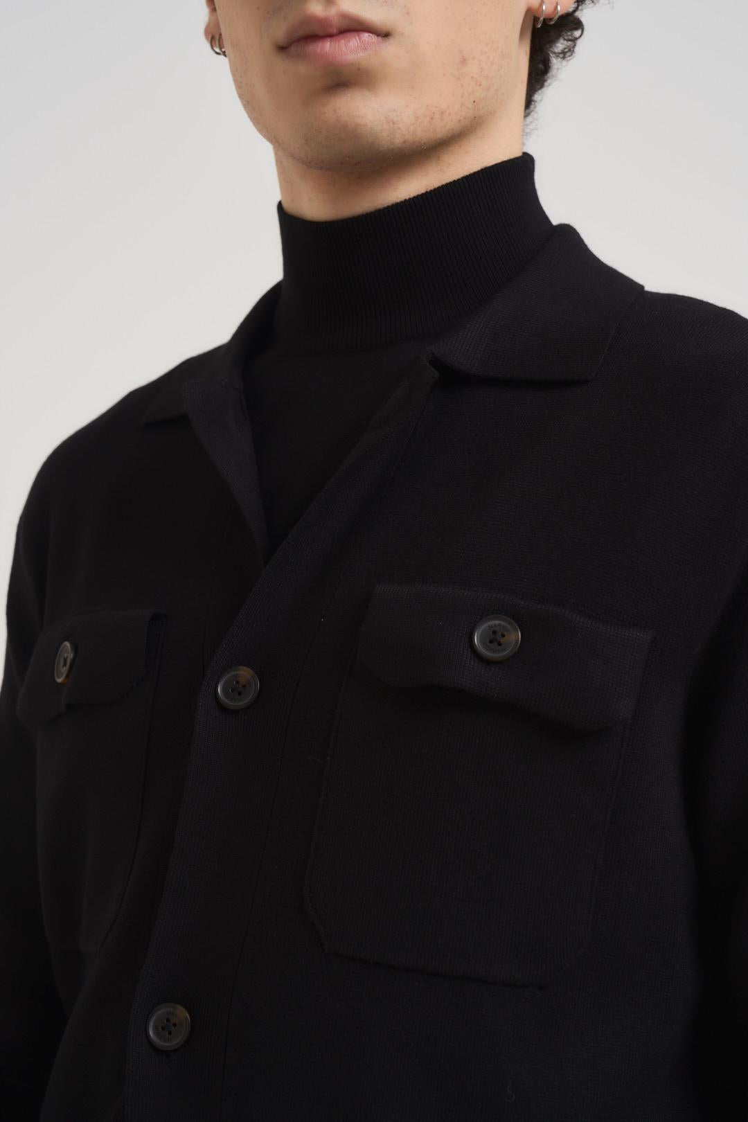 MARKUP Cardigan in maglia uomo nero. Modello a maniche lunghe. Collo, polsi e fondo a costine. Chiusura con bottoni sul davanti. Due tasche frontali. Regular fit. Composizione: 80% Viscosa 20% Nylon. Il modello è alto 190 cm e indossa la taglia L.