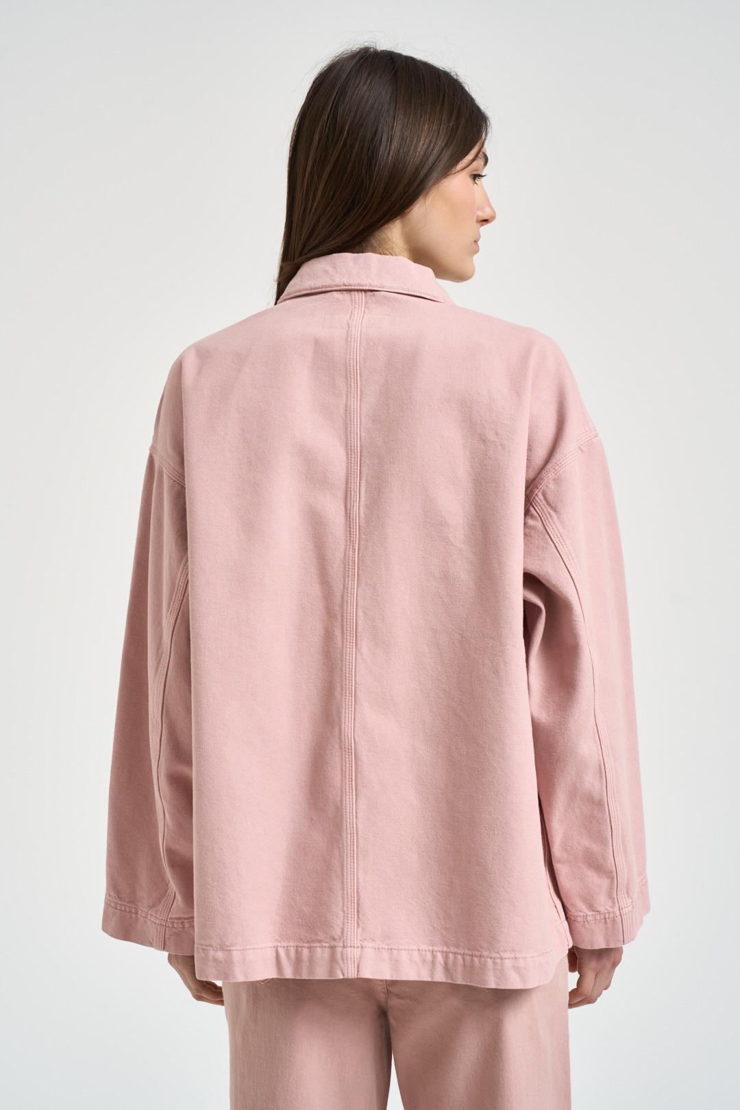 MAX MARA WEEKEND Giacca donna in denim rosa. Modello dalla linea dritta, colletto classico, chiusura frontale con bottoni tono su tono. Due tasche applicate sul petto, una delle quali impreziosita da label logata cucita, e due ampie tasche applicate sul davanti. Maniche lunghe con spalle leggermente scese. Cuciture a vista e fondo dritto. Composizione: 100% Cotone. La modella è alta 176 cm e indossa la taglia 38.