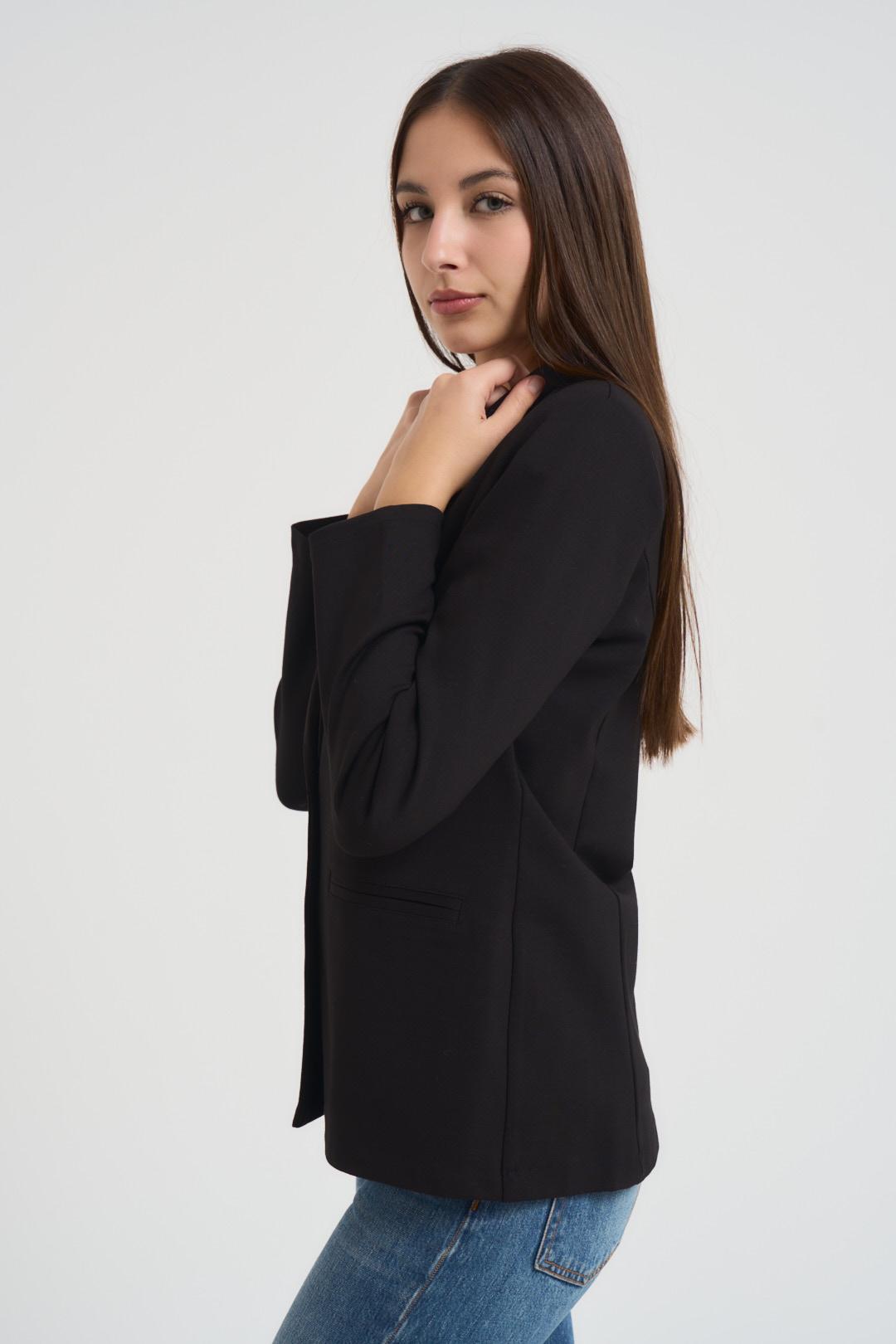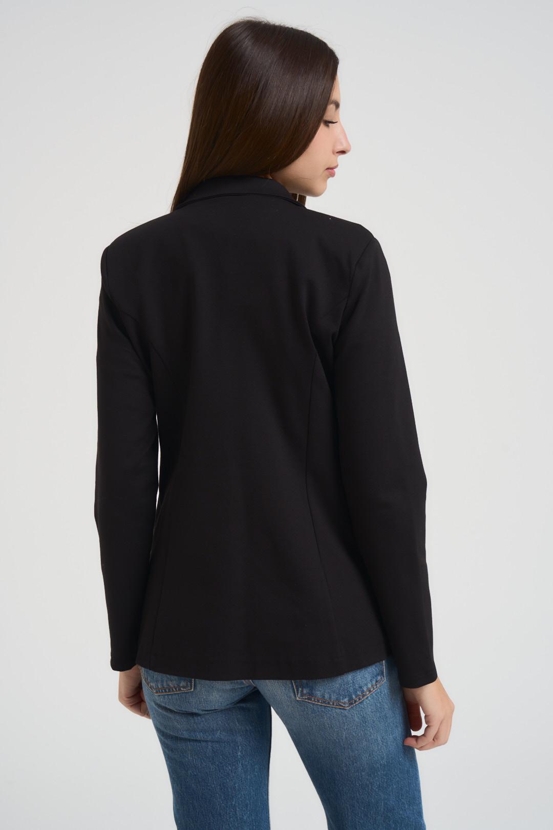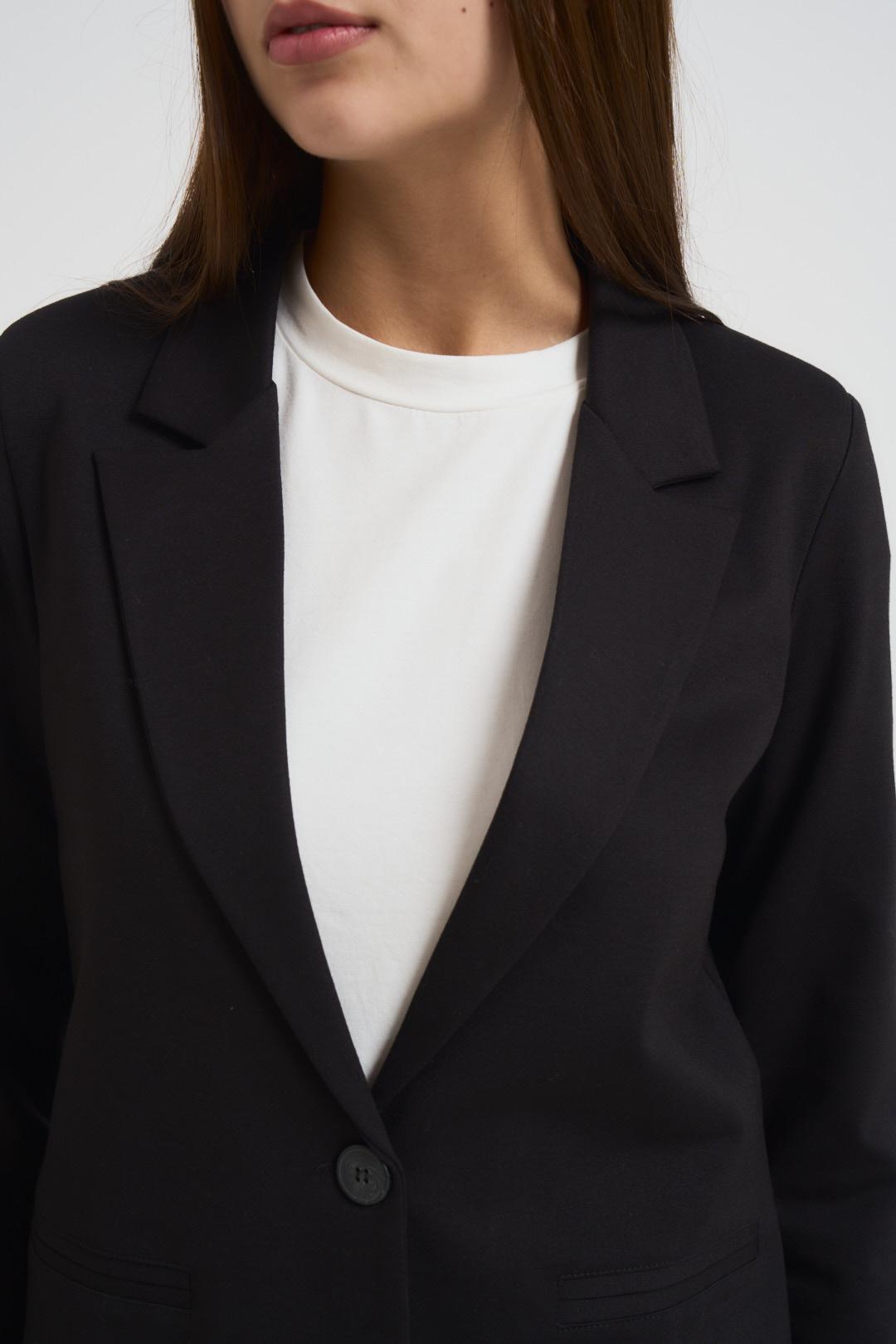 INCLOTH Giacca donna monopetto nera. Modello con chiusura a un bottone e due tasche a filetto laterali, classico collo con rever. Composizione: poliestere. La modella è alta 176cm e indossa la taglia S.
