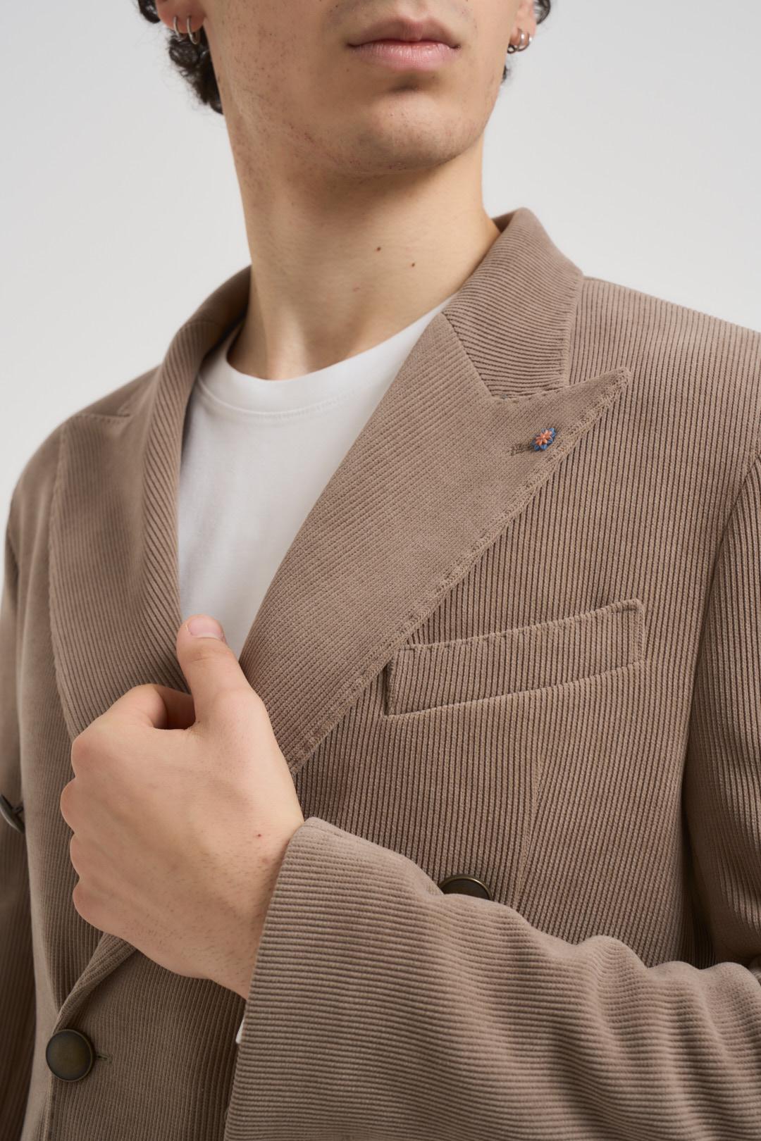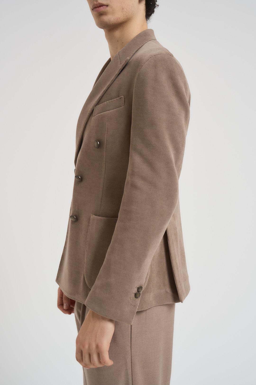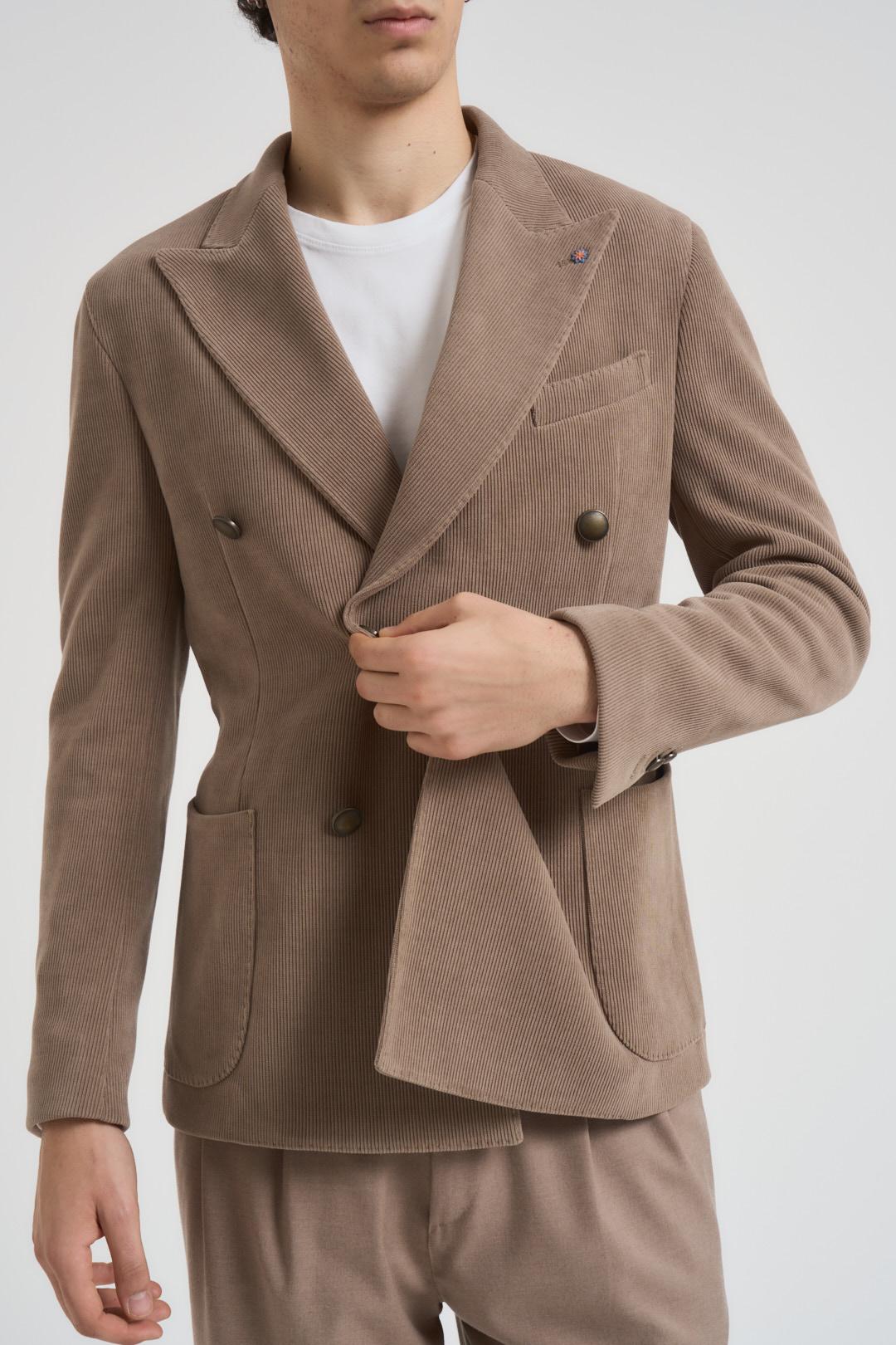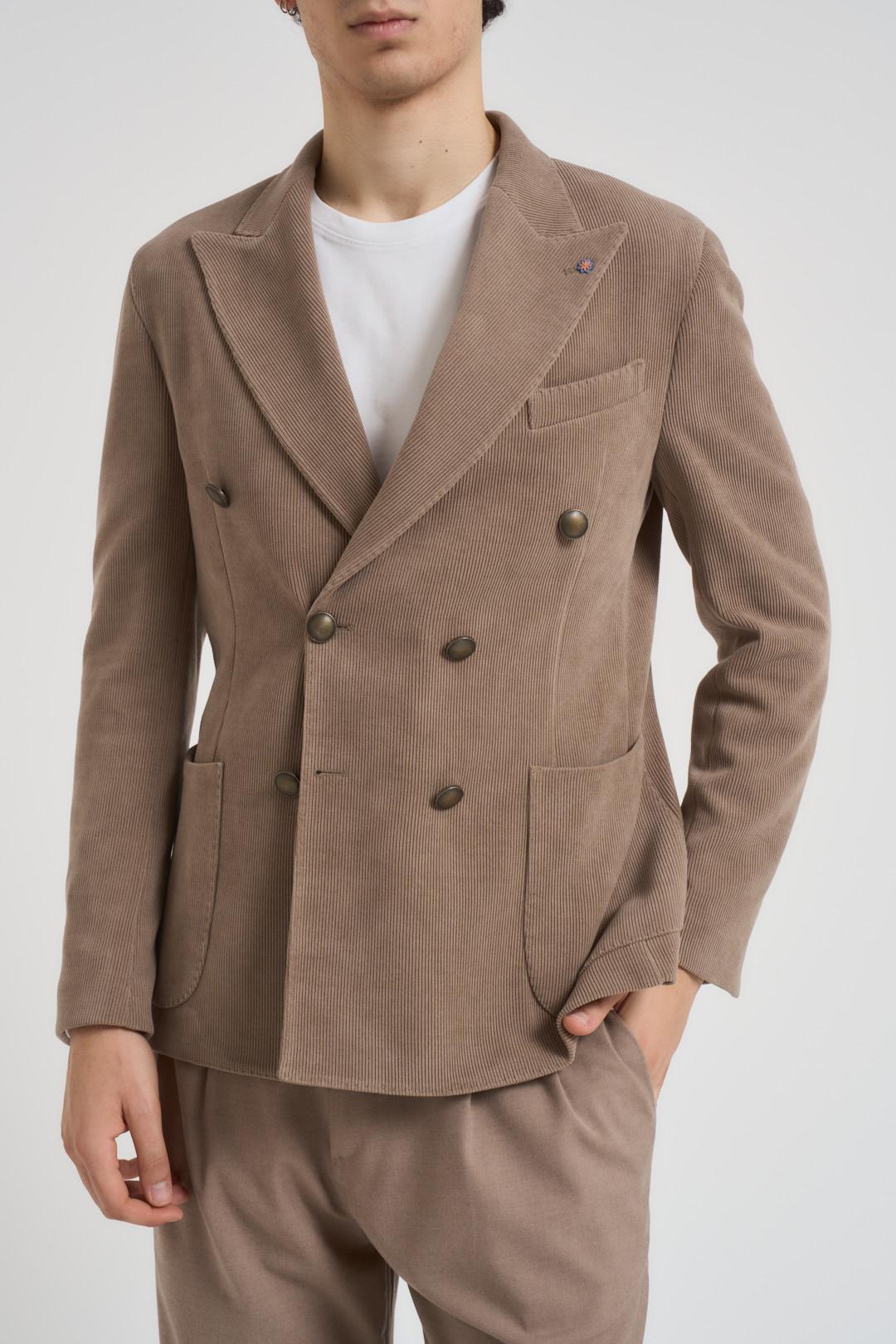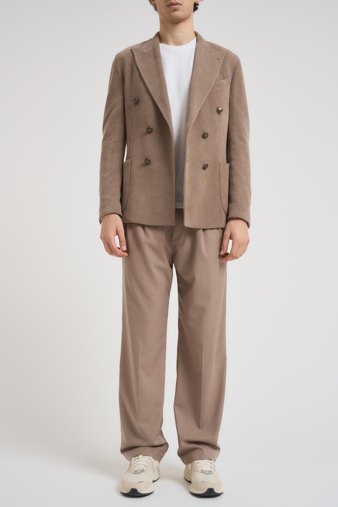 BHARNABA Giacca uomo doppiopetto tortora. Chiusura con bottoni, classico collo con revers, spacco sul retro. Composizione: 70% Poliestere 30% Lana. Il modello è alto 190cm e indossa la taglia L.