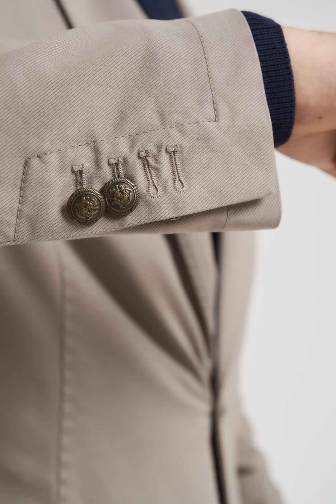 BHARNABA Giacca uomo monopetto beige. Modello con classico collo a revers classico, chiusura a due bottoni a contrasto, taschino sul petto e due tasche a patta. Composizione: misto cotone. Il modello è alto 185 cm e indossa la taglia 48.